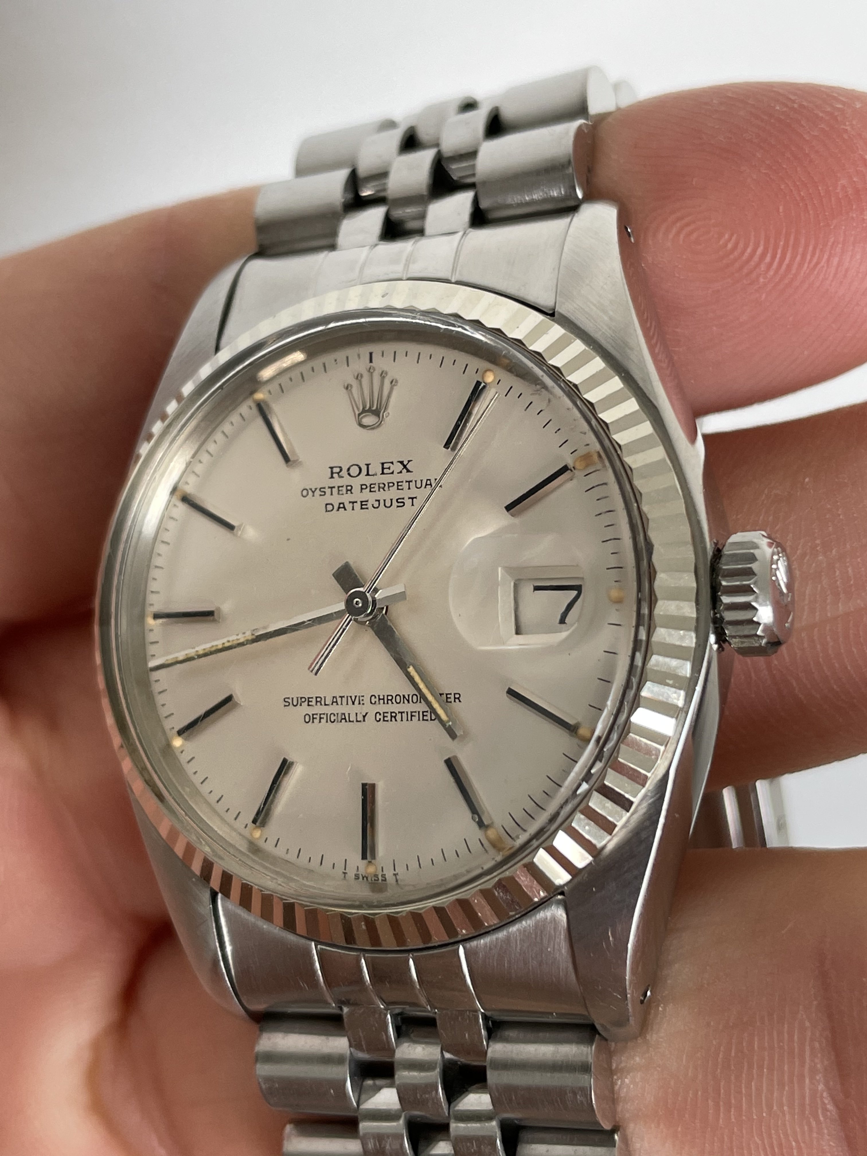 Anyway! I finally happened upon the following piece. I know the crystal is a bit rough, but I find the price reasonable, and I truly love the way the bezel plays with the light. The hands are not the best, admittedly, but for some reason, I find the matching patina of the hands and dial's lume to be just so nice. All in all, I love this watch. I am wondering, though, about the dial. I've seen so many DJs with the word "DATEJUST" in font much bigger than this piece. In fact, this watch's font seems quite scaled down comparatively (this, though, I find charming.) I wonder, though: Is this an issue? I really haven't been able to find a definitive answer, so here I am! What are your thoughts?