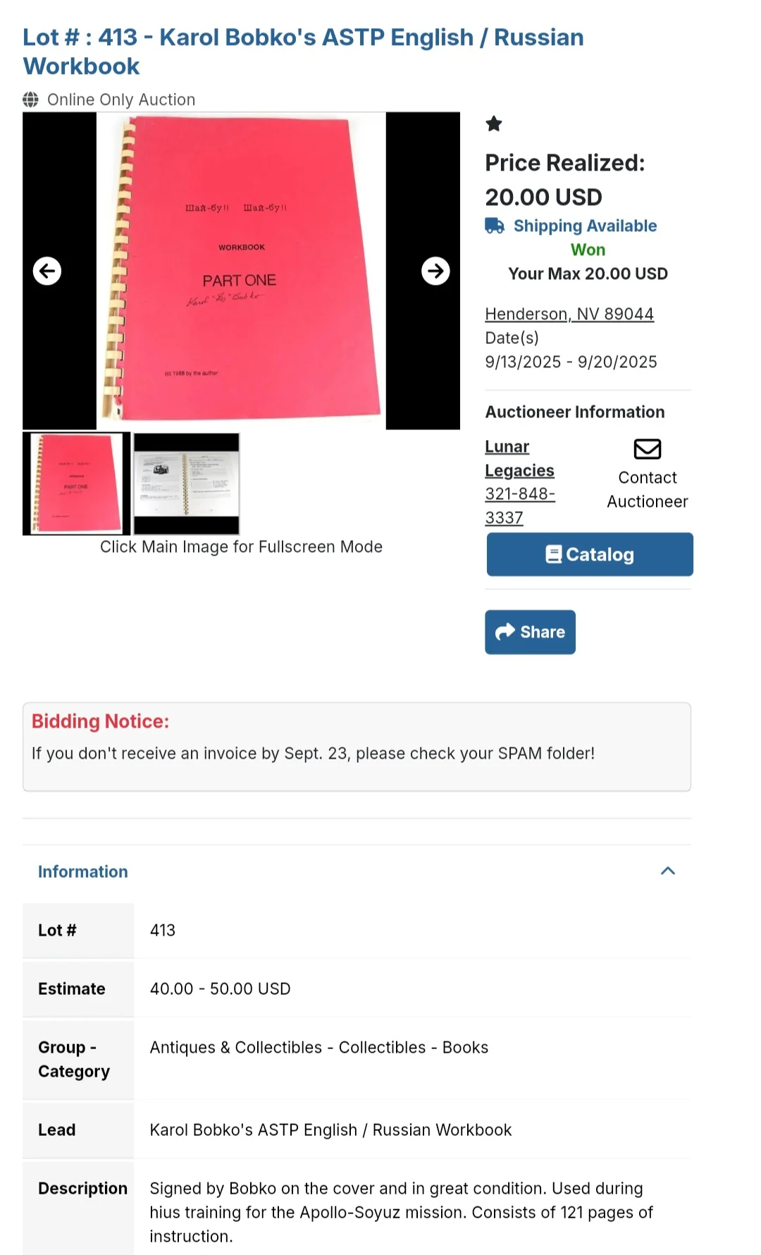I bought this from the auction for my Apollo-Soyuz collection: