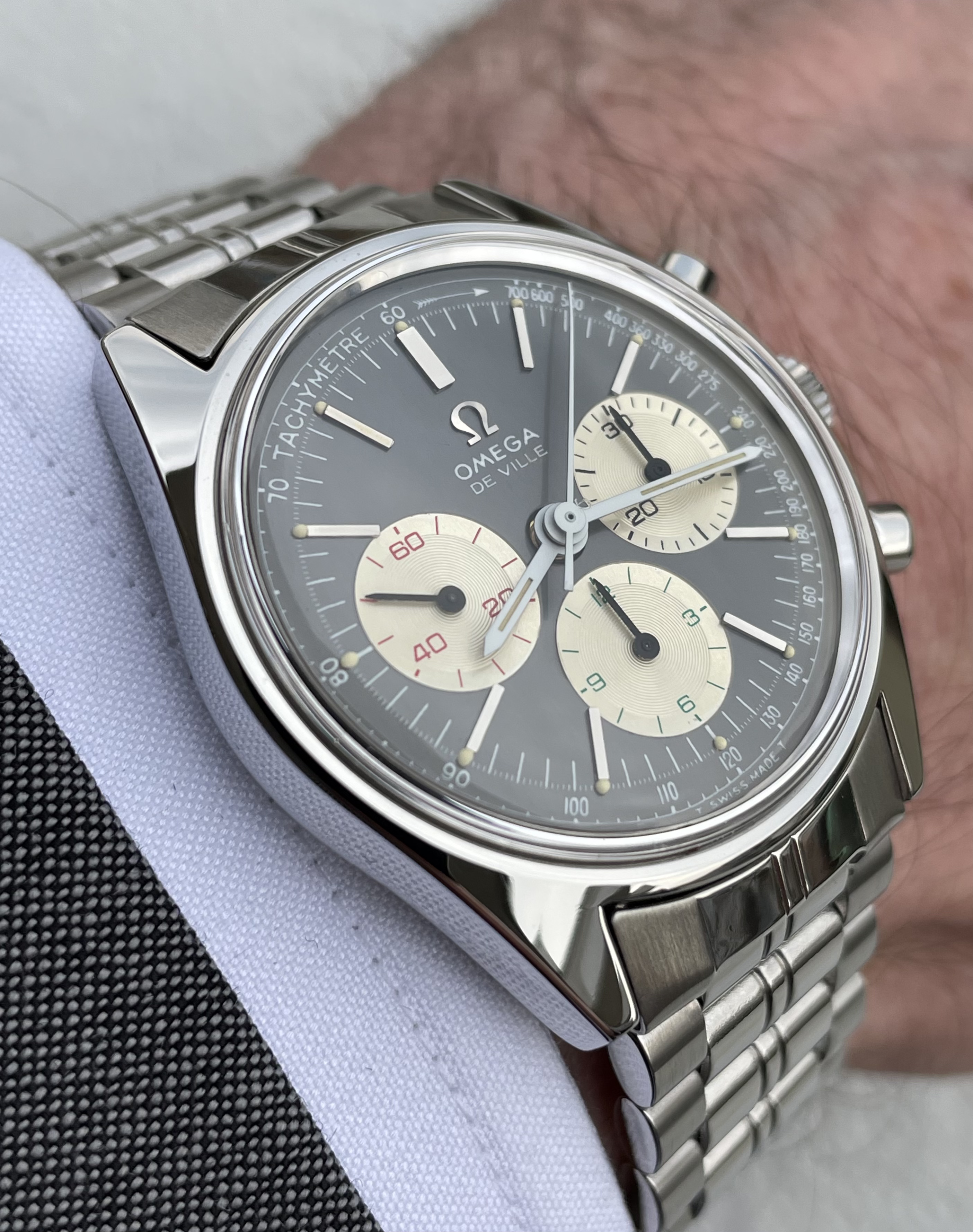 (1) My first question is regarding dials. I’ve seen a few versions online without the tachy scale. I think I’ve seen enough pictures to just about convince me that the non-tachy dial is correct, but was hoping someone might be able to confirm. (AJTT shows and mentions a non-tachy version for the earlier Seamaster De Ville chrono 105.005 / 145.005, but no indication of this for 145.018)
