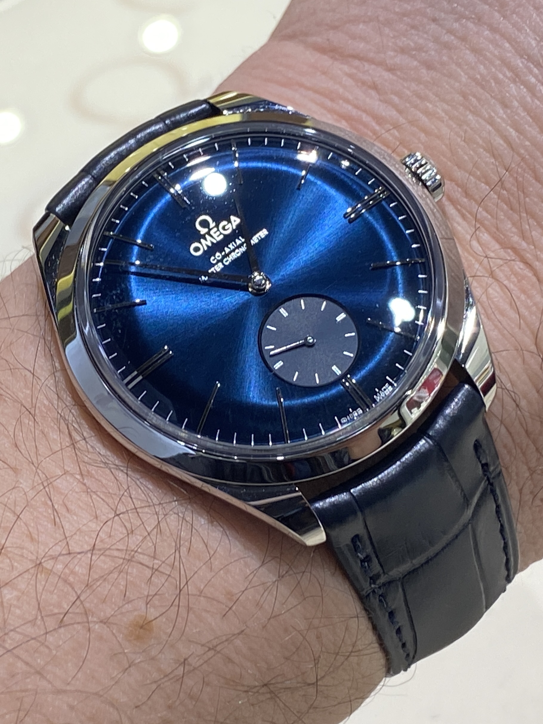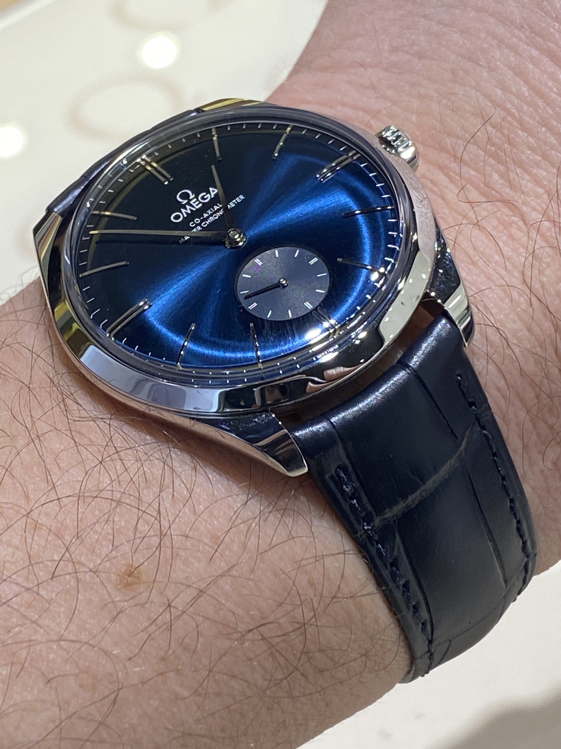t's shiny enamel dial with sunbrushing and thanx to rounded edges - fumeé effect.