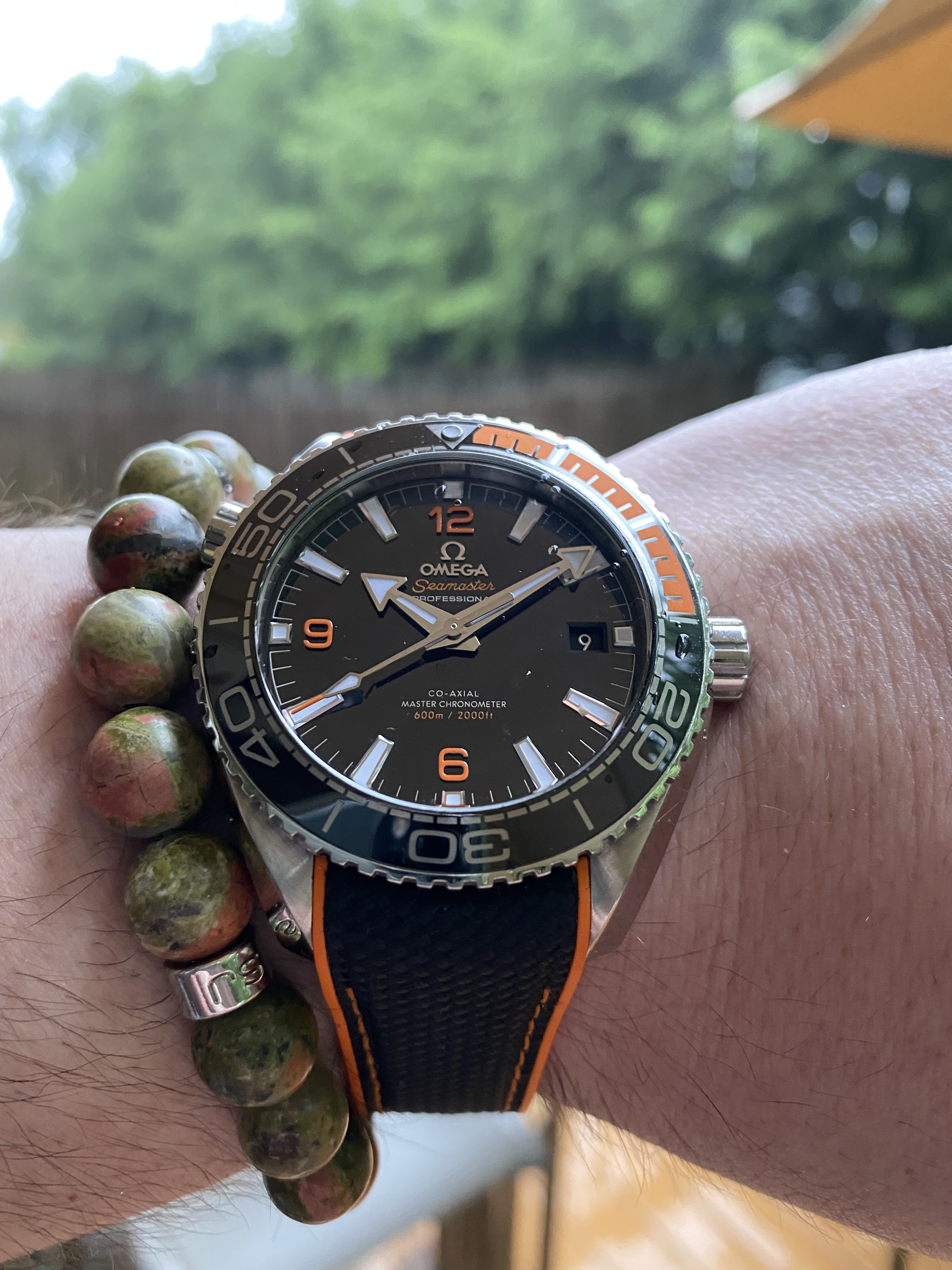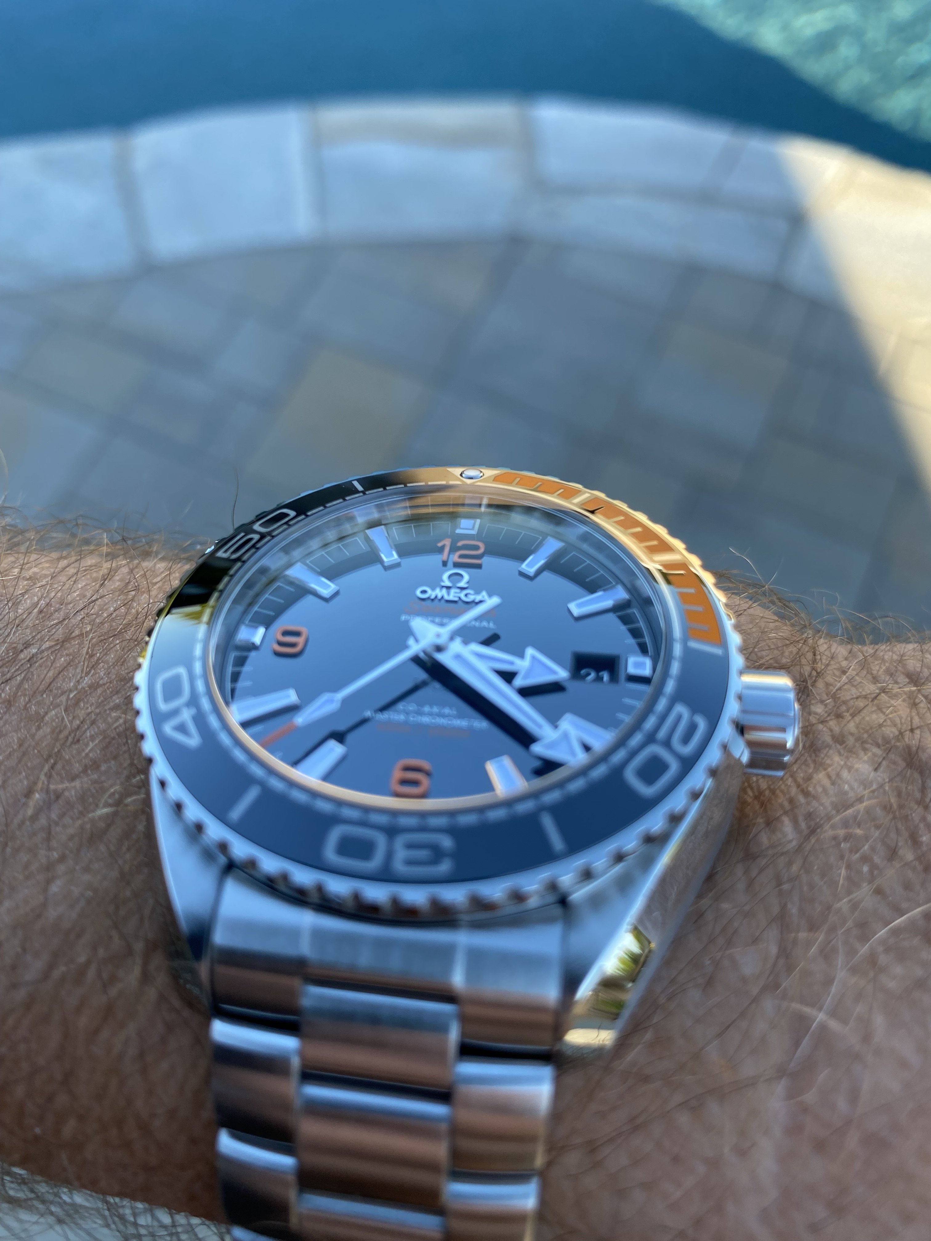 ·So finally picked up my 1st Omega, a SM PO. I went back and forth for about a year, went with the 43.5mm black dial orange numbers. Orange and black bezel over the all black version. Was thinking the all black was too much like my SS Sub. Now I’m all in love with it then then start wondering, damn, should I have gotten the all black, lol. Damn! Can’t have two of the same! Well I do have 2 subs, SS and TT blue.