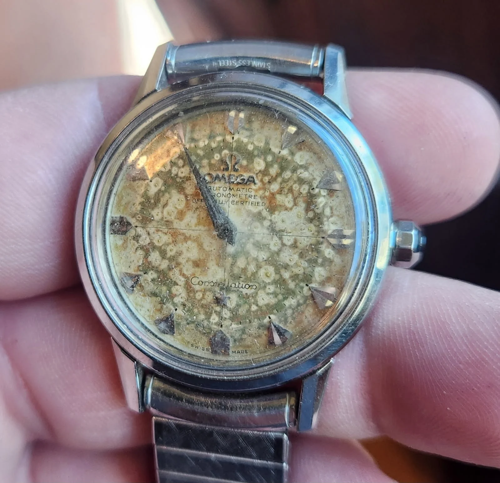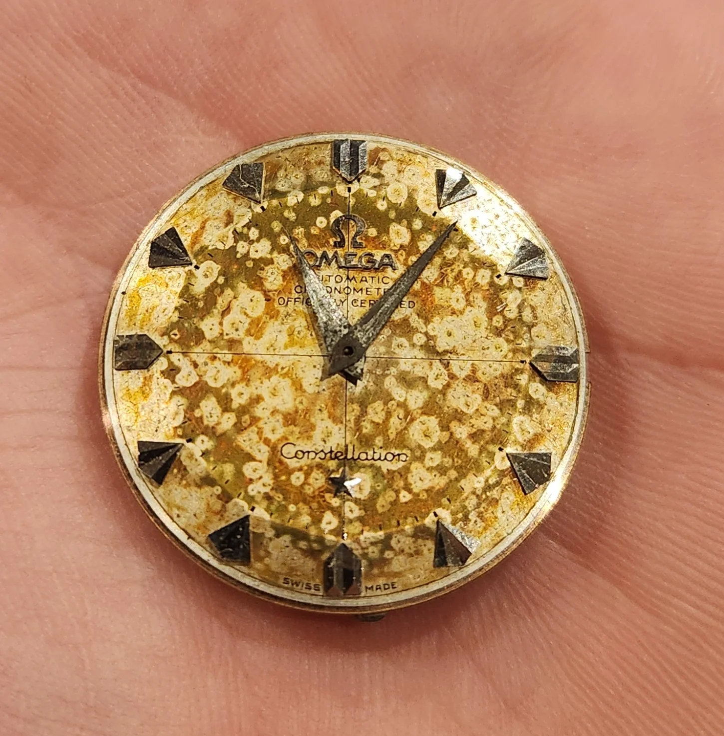 ·So, I got this 505 constellation movement, original dial, and hands basically thrown in on a deal. It came with a loose 2852 caseback, and an incorrect mid case that the back doesn't fit. The caseback is nice with a good medallion.
