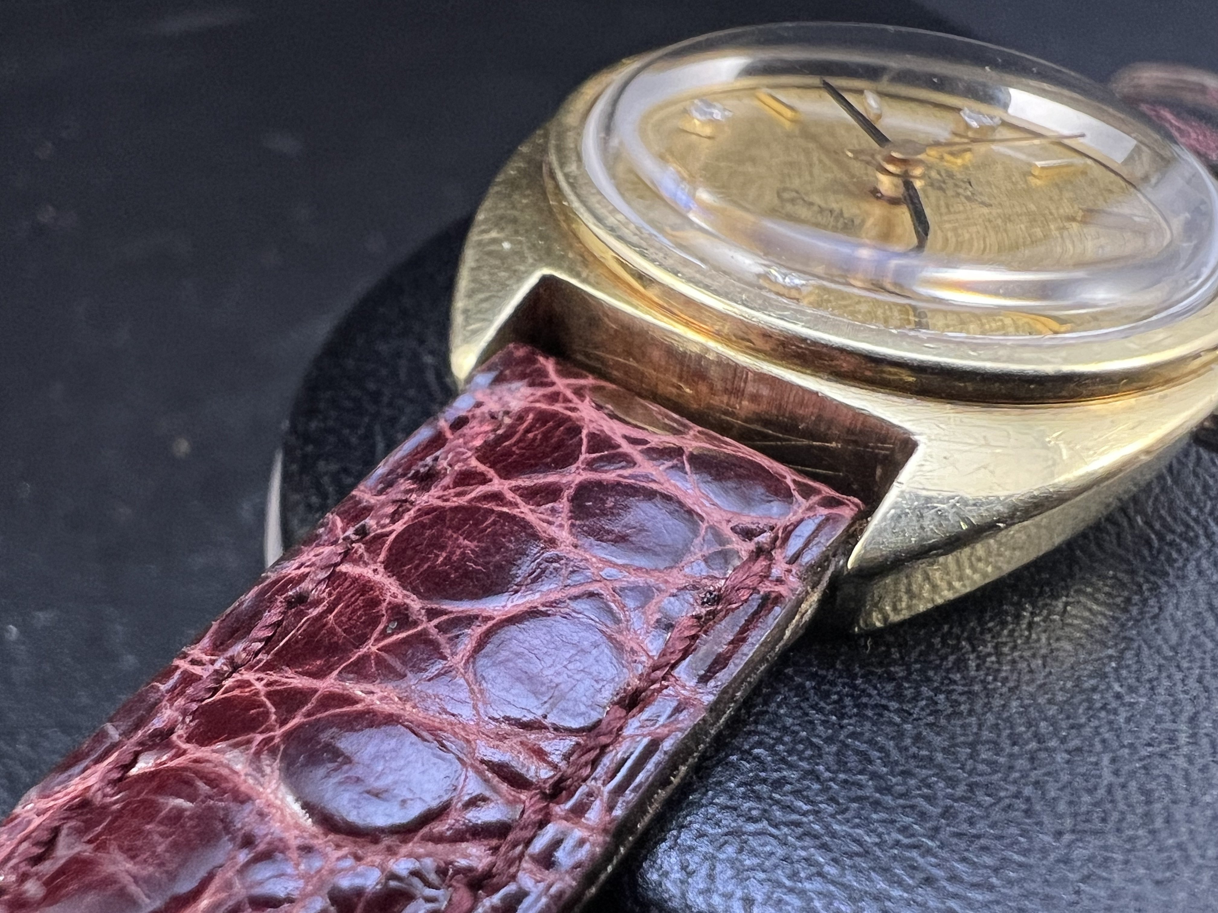 Beautiful watch, service history unknown. Crystal, crown is Omega signed and silver coloured to contrast along with the diamonds. Could pair well with a gray alligator strapas well but I only had this 12mm strap to pair with.