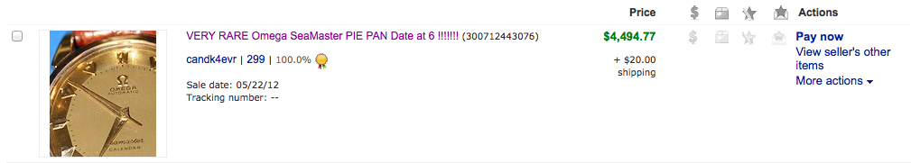 ··Vintage Omega AficionadoInteresting to see where it goes. Seller wants 5-10k for the watch which at least IMHO too high. We have 2 reasonable comparables on ebay - the 4k for the cartouche black dial SM cal. 352 and the 6k or so for the hooded lugs NM pink gold cal. 354 with textured dial and solid gold bracelet (which would mean 4-4.5k head only). At least in my opinion, these 2 pieces are rarer and more valuable than this one but that's strictly my opinion. Granted this is a nice piece but even NM cal. 321 speedmasters sit on ebay for awhile if the price is too high so at the right price, this will make a good addition to a vintage omega collection. But if the auction goes to completion without the almost ubiquitous shill bidders then we will all end up a bit more enlightened.