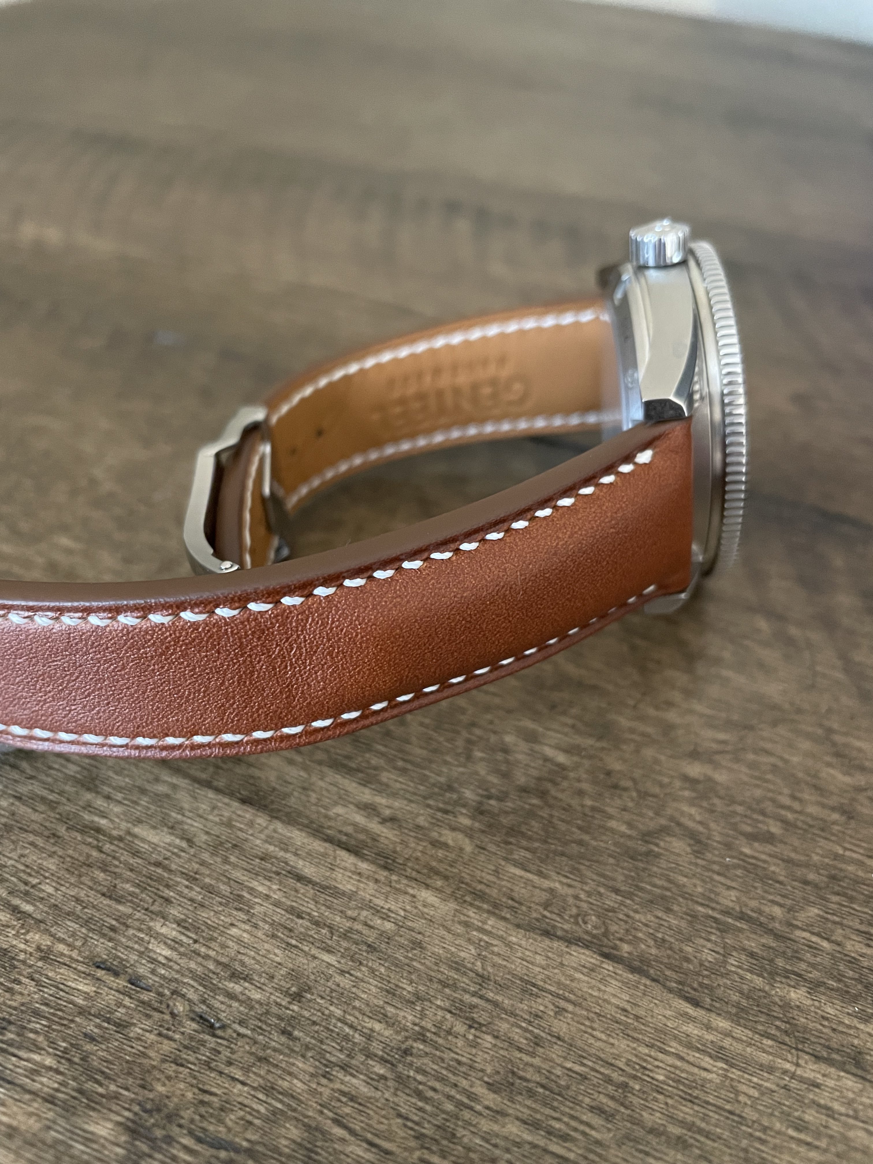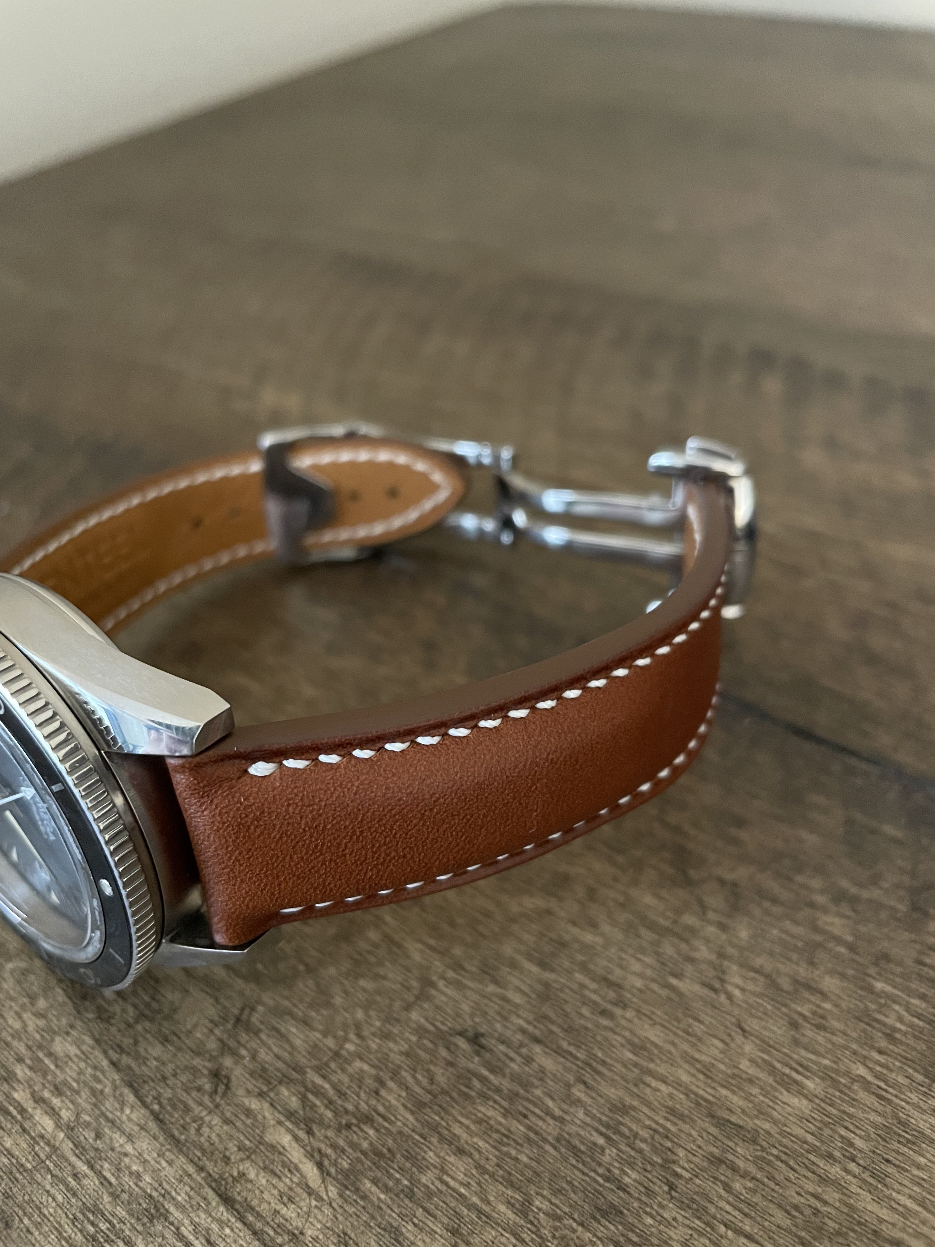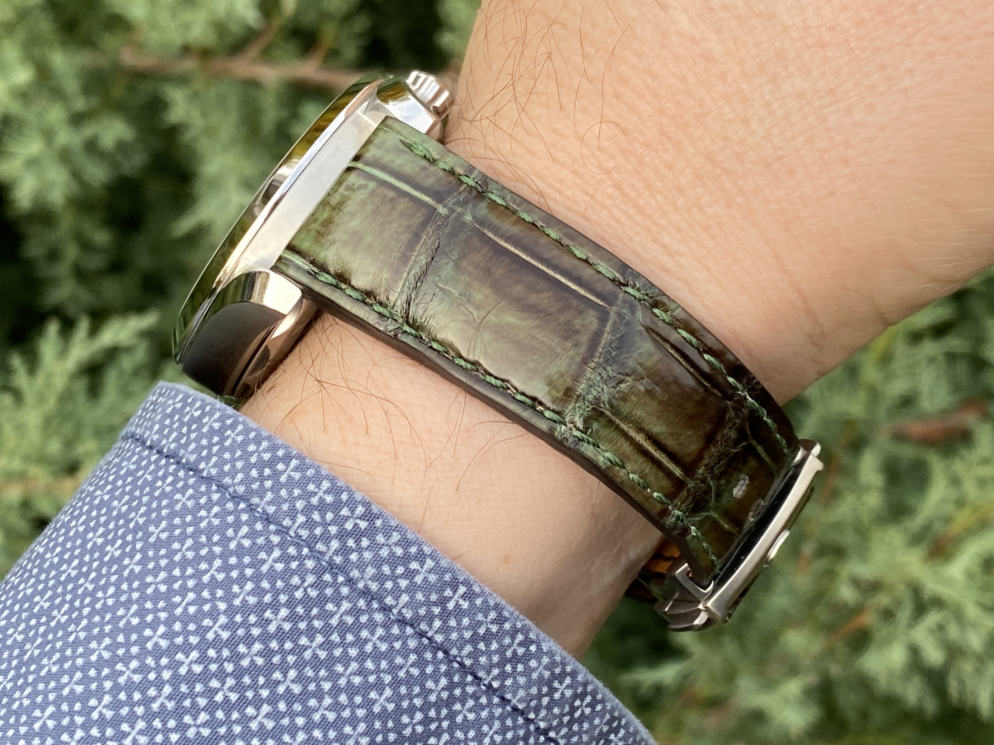 I have a Himalayan Croc leather band from Genteel Handmade on my deployant.