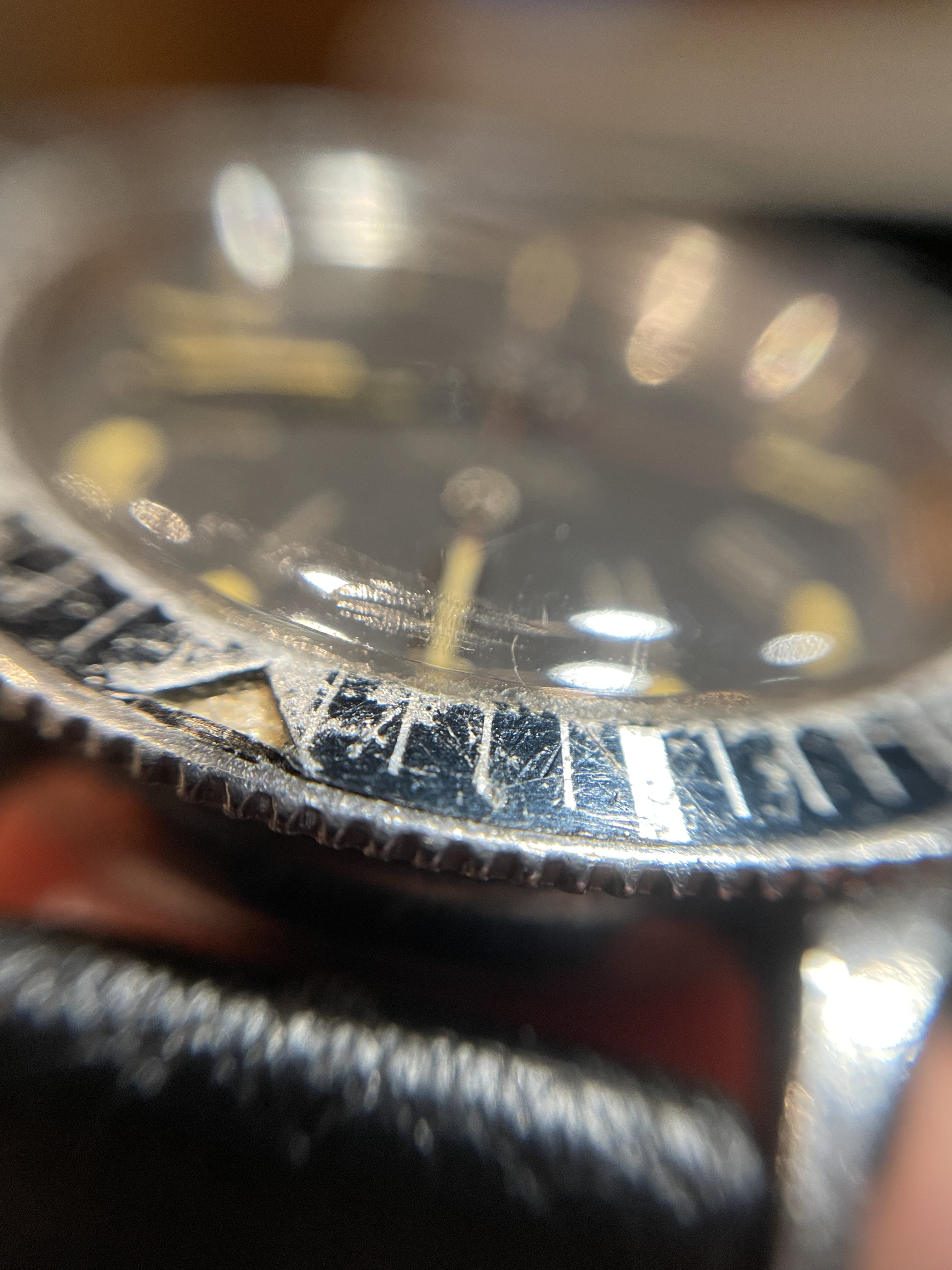 This morning I received a note from the buyer about some dial damage that he found after unboxing. The pics are below. I am at a complete loss to explain this as I know the watch on this dial was lovely when I sent it.