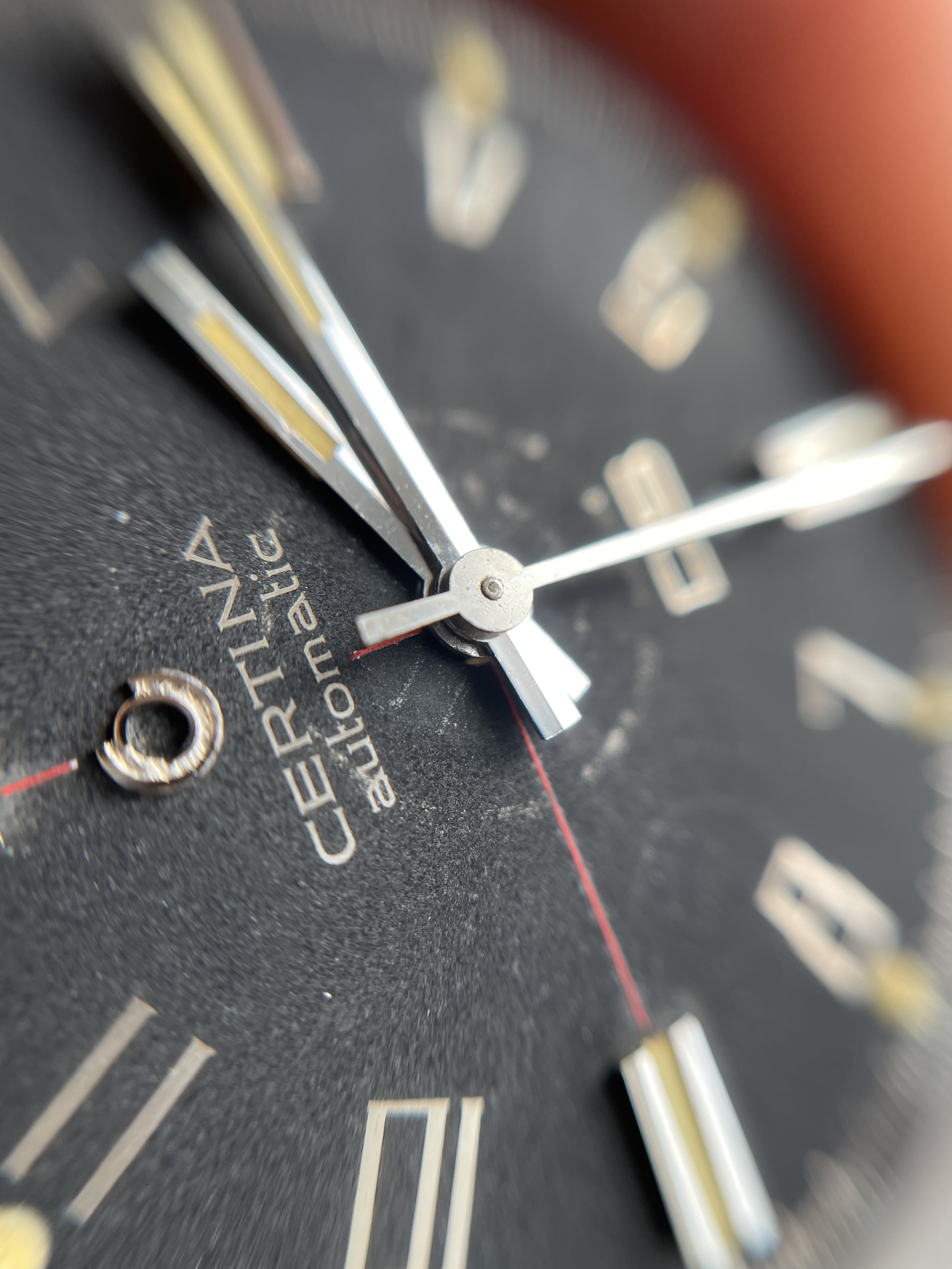·It could be a tiny piece of loose debris that got lodged between the hour hand and dial during shipping?