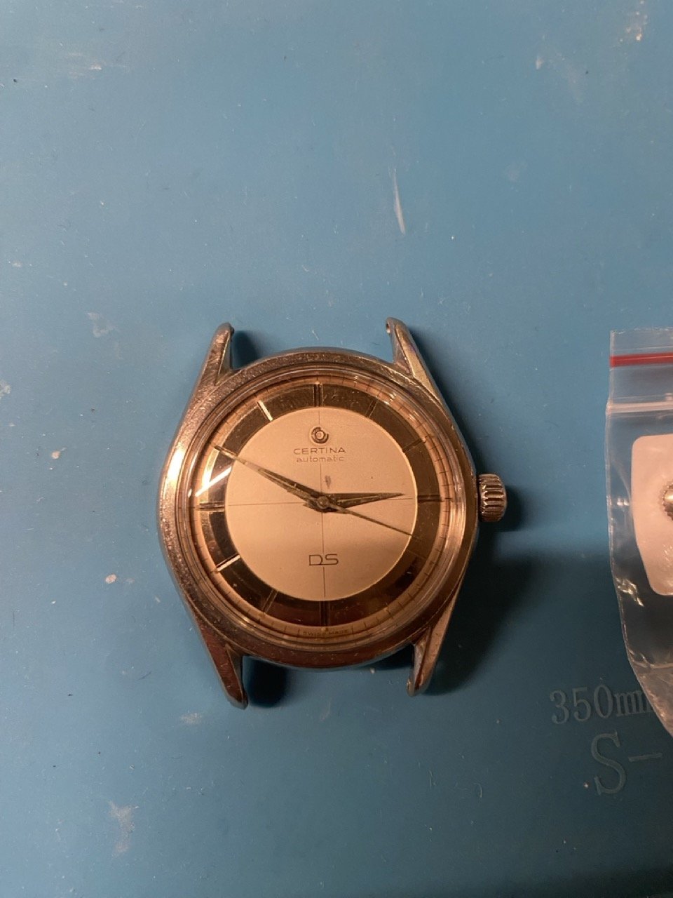 Far from perfect, because as you can see there is some kind of…lets’ say mole…right in the middle of it. The case itself is way too polished and the crown is - as it often is with Certina - the wrong one.