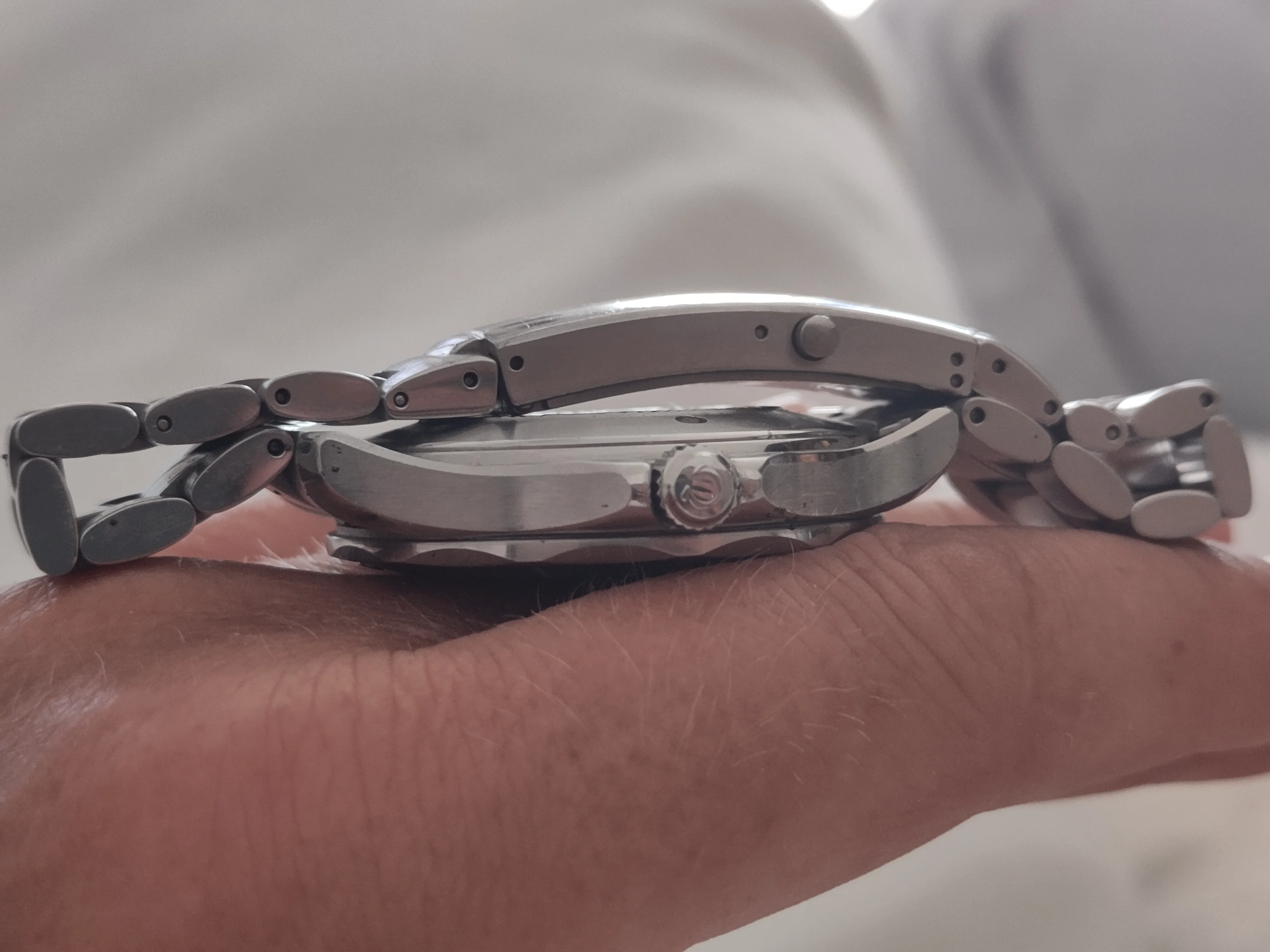Decided to "downgrade" the clasp back to the original, non-adjustment clasp. Felt a big relief! Watch is lighter, less bulky, and it feels nice to have a smaller clasp under the wrist. For comparison, here is a side by side of the original, with the 117stz001154 clasp. The latter clasp is a bit thicker, too.