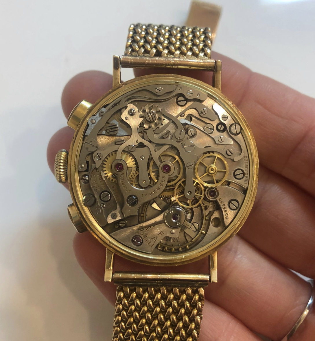 ·An interesting piece that was auctioned off by Hindman earlier today. Sold for $13,000 plus buyer’s premium. I was interested in the piece and had asked the auction house to provide a photo of the movement and inside of the case back, which they did.