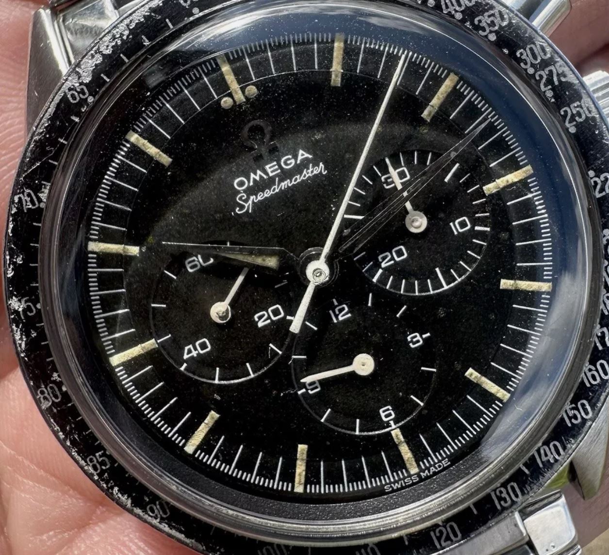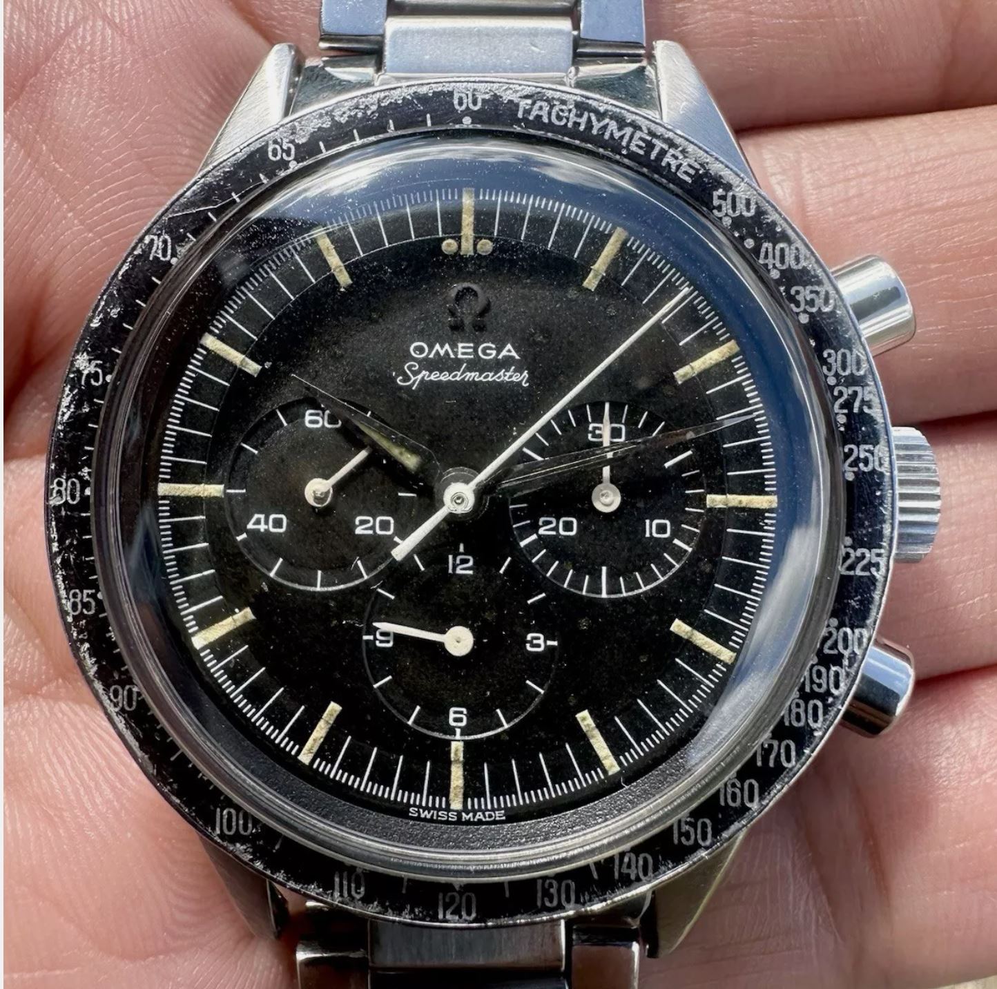 ··Prolific Speedmaster HoarderThis just closed on eBay. When it came to my attention it was at around £3300, which is probably what a good/excellent correct movement is worth, plus the alpha hands. It has a 7912 bracelet, but I think the end links are after market, so I don't value them