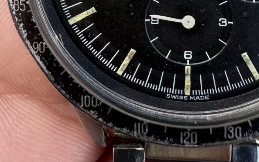 Correct dial. Note the slight step, the Applied Metal Logo, SWISS MADE.