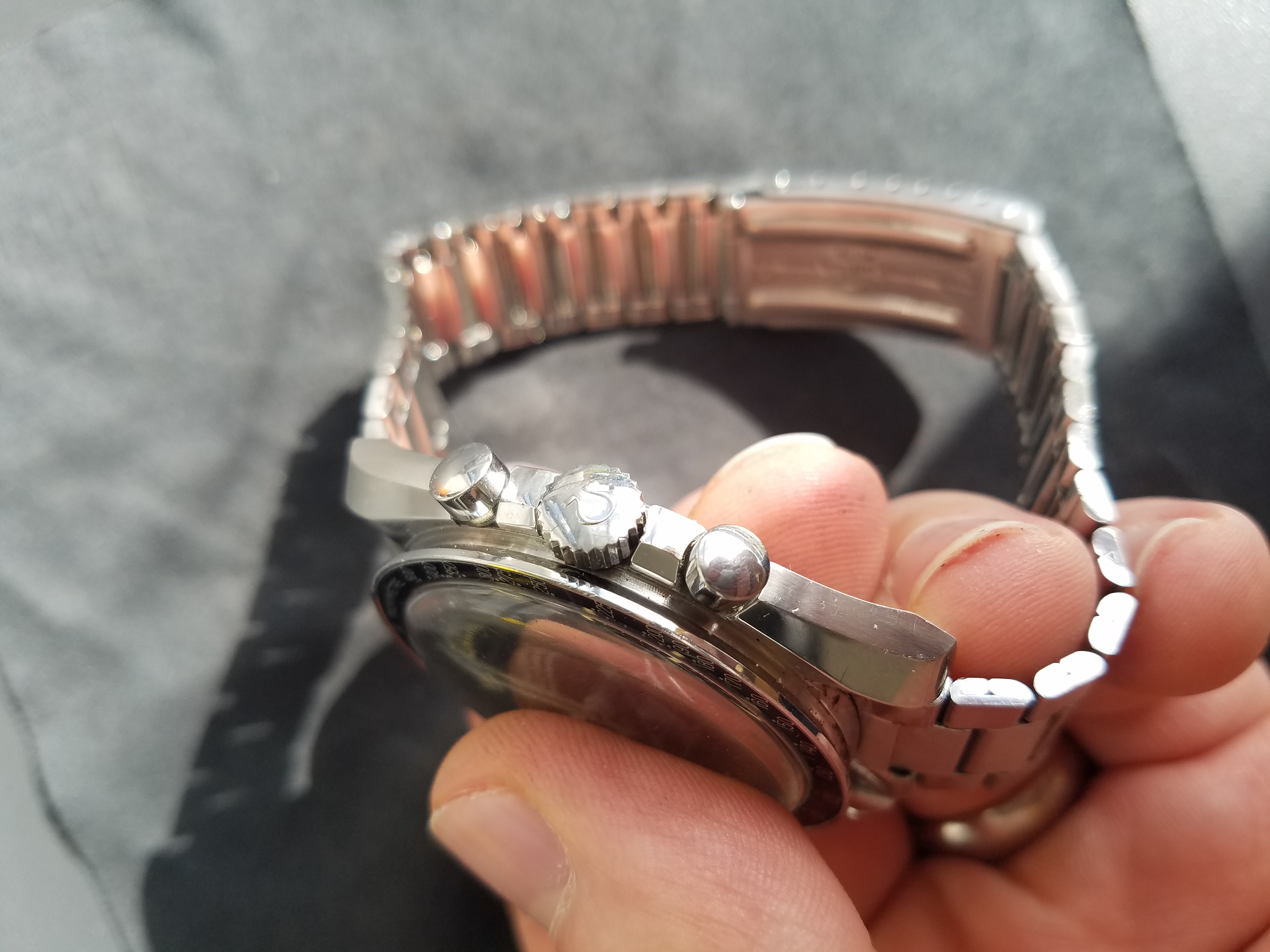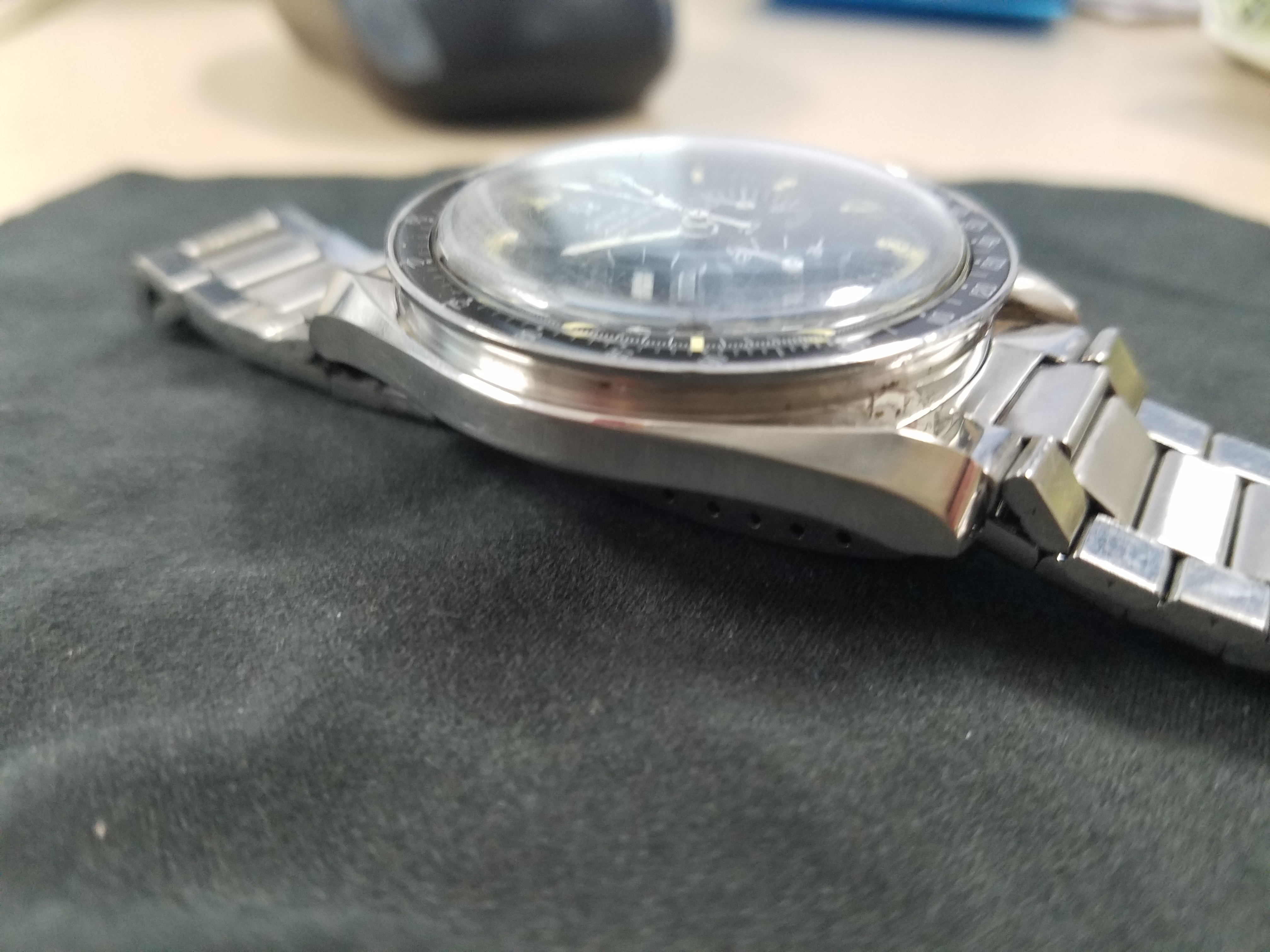 Bezel is near perfect. Dial and hands are perfect. Facets are perfect. Caseback has some idiot marks and a light polish. Case is 90% original, but appears someone hits the side with a buffing wheel and removed brushing...lines are still sharp, and thank God they didn't hits the facets or lugs!