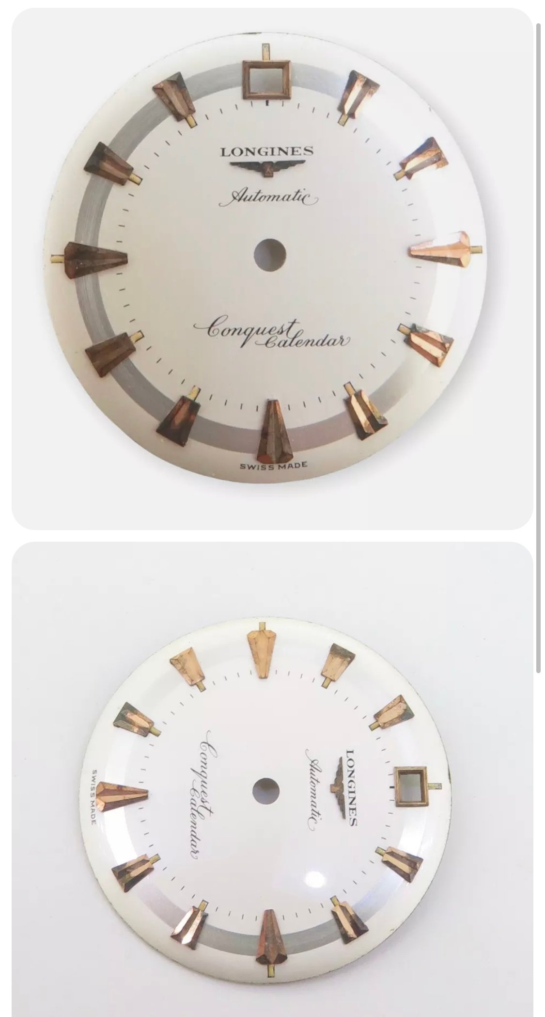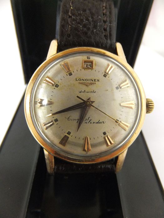 ·An interesting dial popped up on eBay this week. It looks like a 9004 reference Conquest Calendar dial, except with the date at 12 rather than 3. Similar to the later references with a 291 caliber with date at 12.