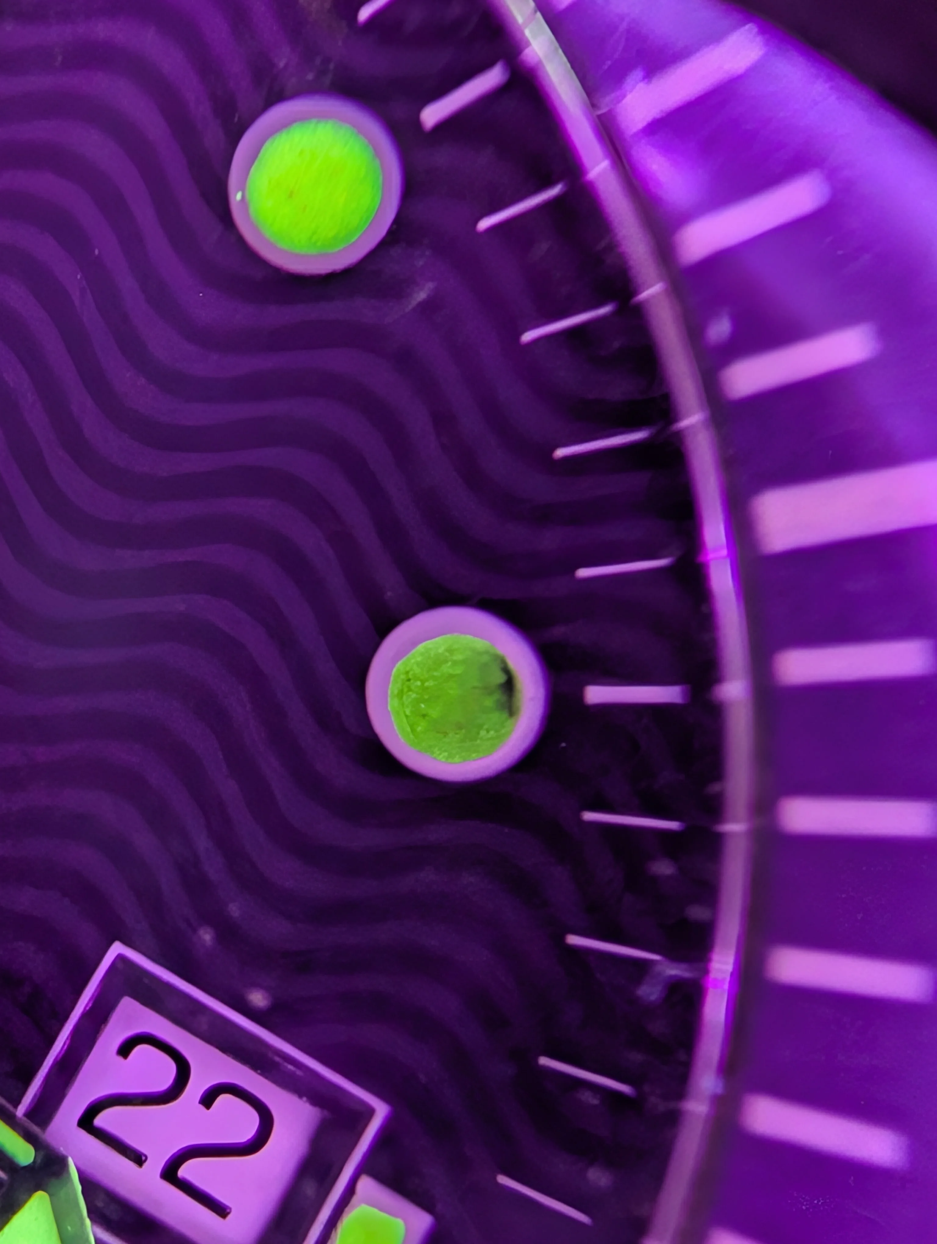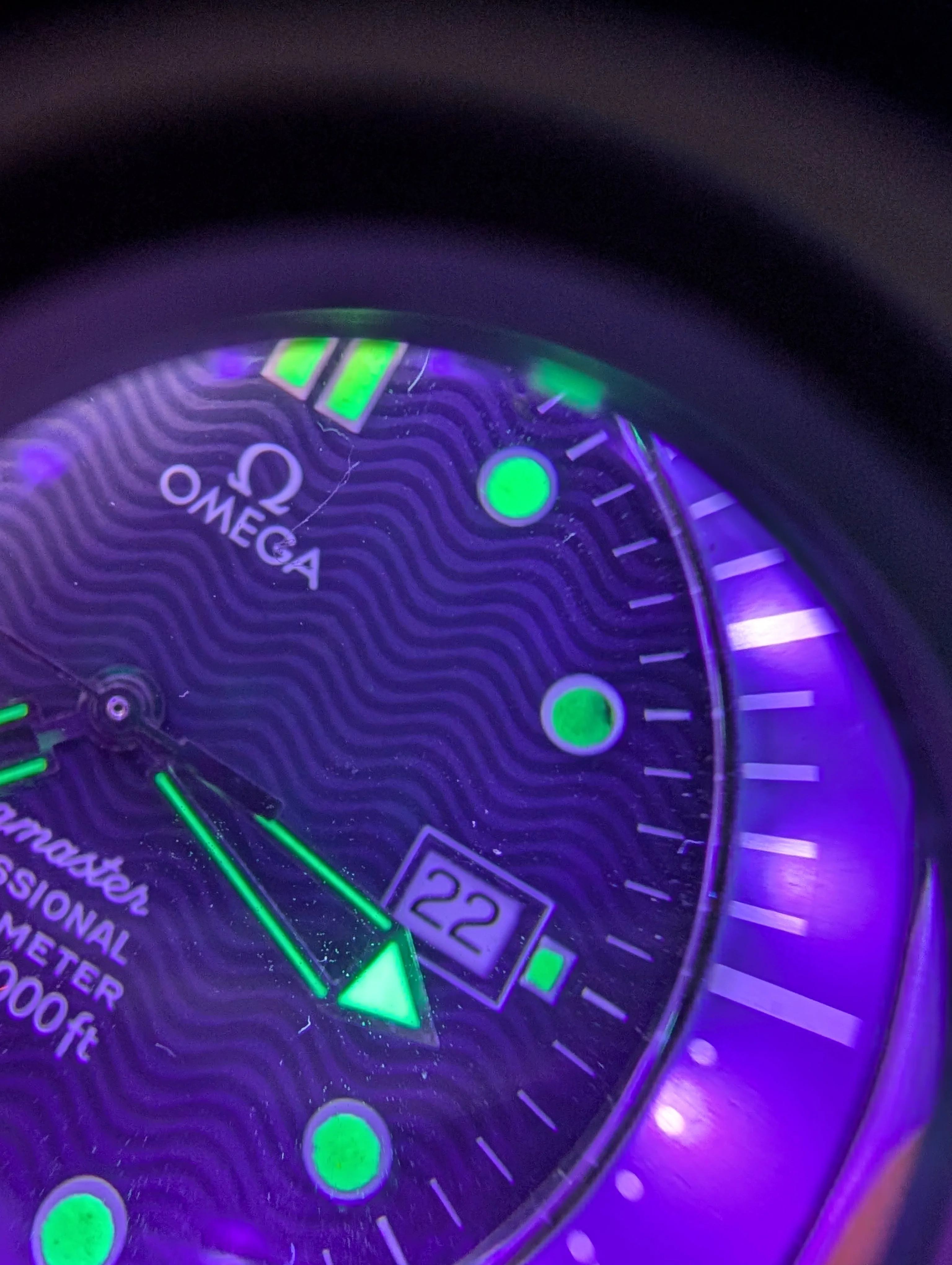 With the skeleton hands, sometimes the lume would breakdown and if it was sent in for a service, the replacement hands had super luminova, which is white in color. At the time, it wasn't as noticeable since the tritium lume hadn't aged much and was still around the same color.