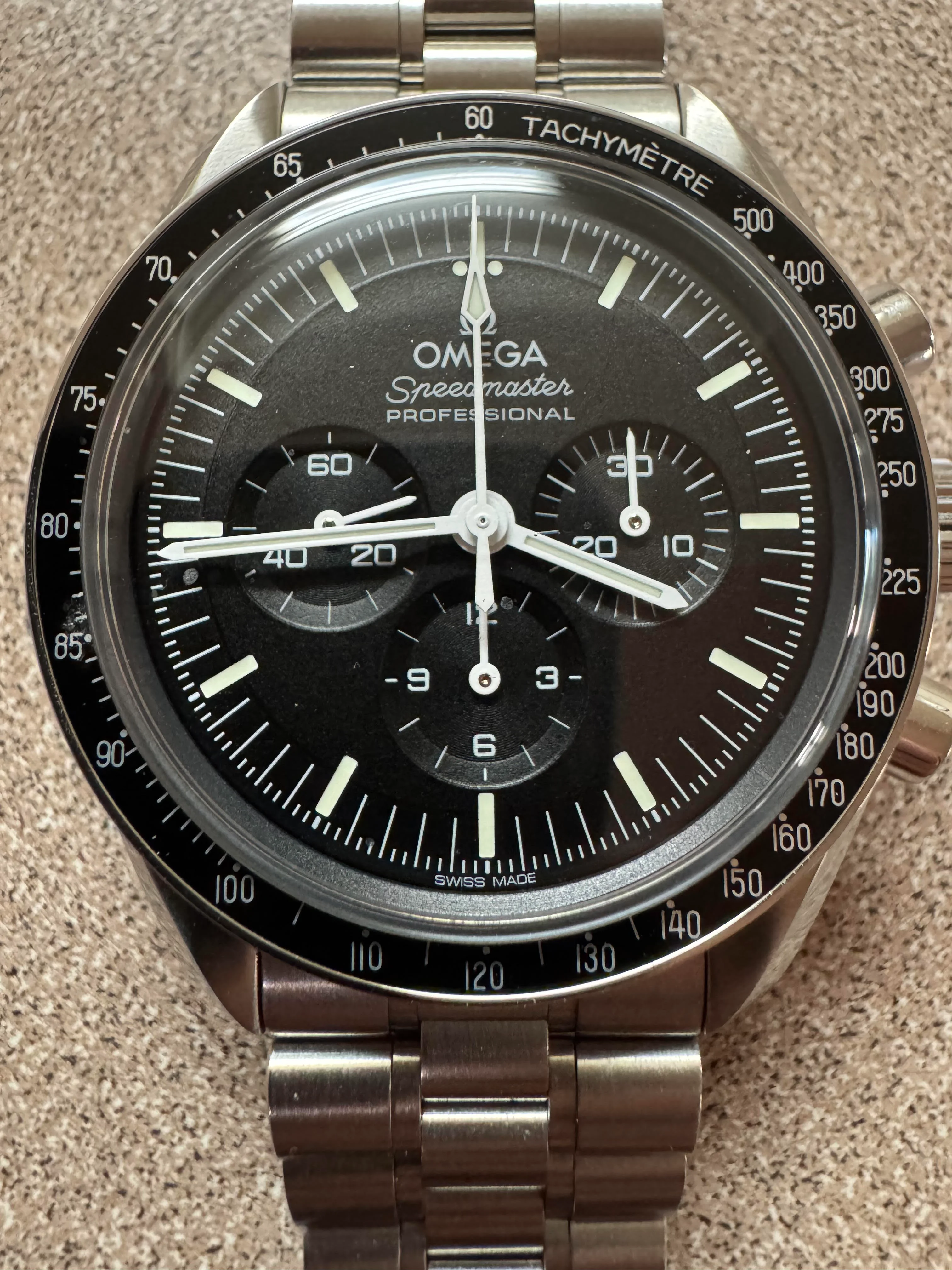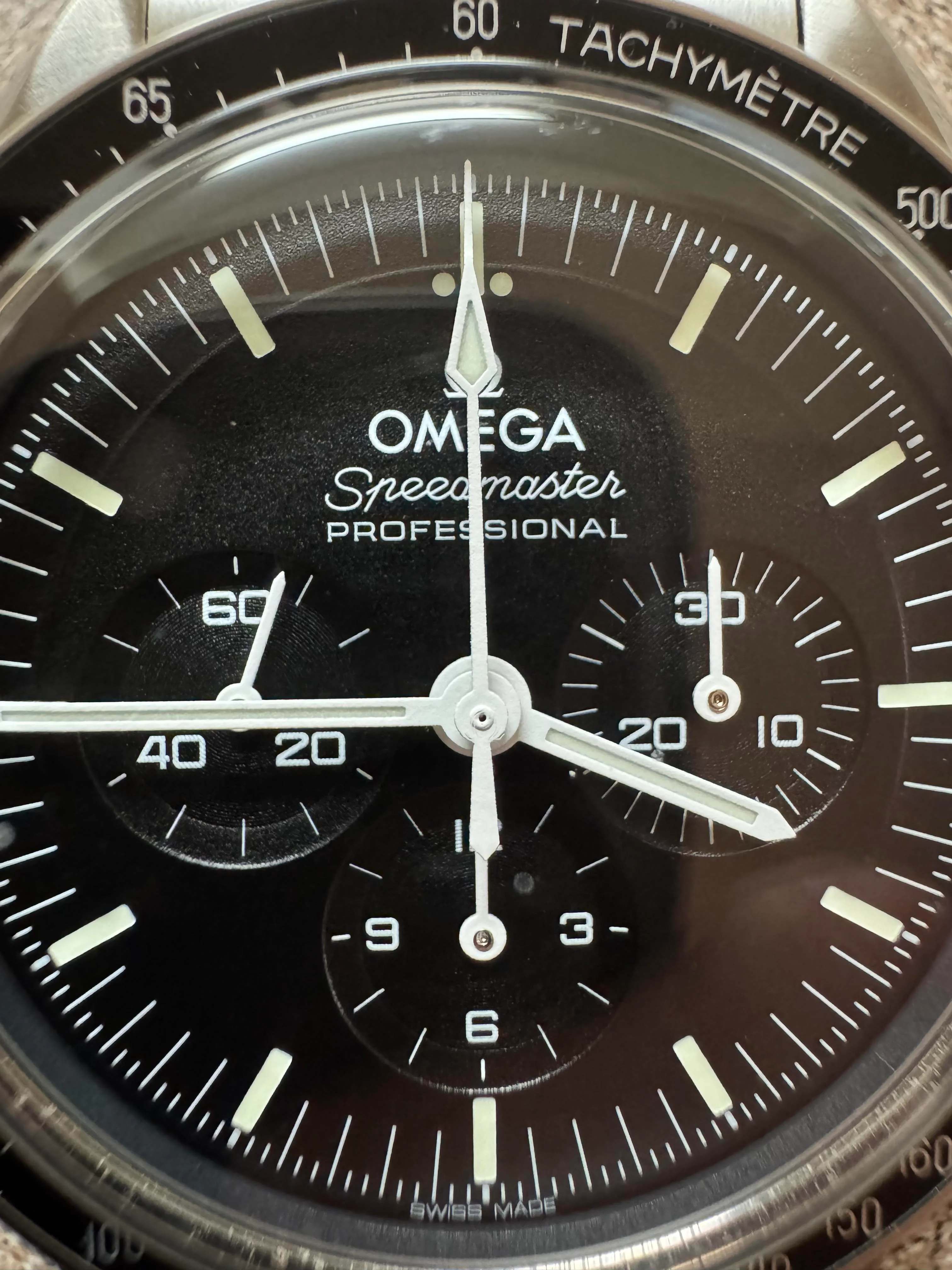 I noticed that one of the hands on my Omega Speerdmaster Pro was visibly misaligned. I took photos (pictures are attached) and contacted Swatch Group support in September. Initially, the representative was polite and responsive. I sent the requested photos, and was told the issue would be reviewed by management and Omega HQ.