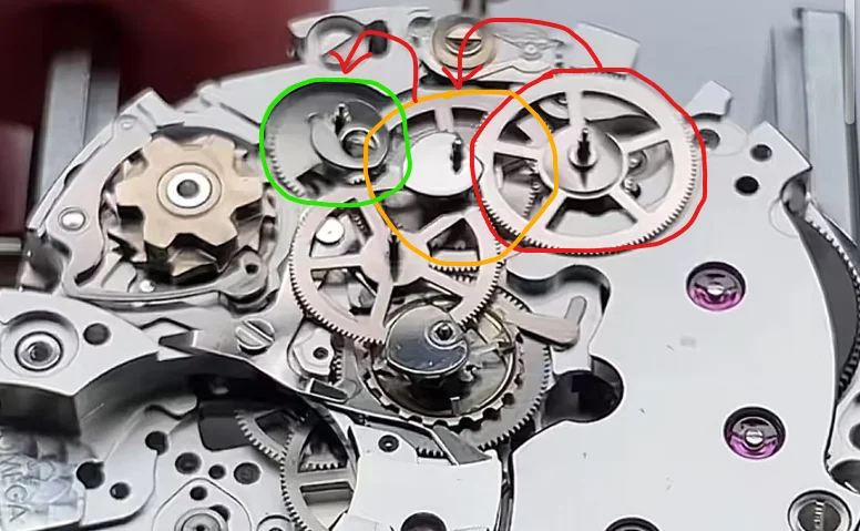 Hello, I would also like to ask that in the 9300 movement, it adopts a double-layer third wheel structure. The upper third wheel is connected to the chronograph second wheel, the vertical clutch, and the center wheel. Then, this center wheel drives the running second wheel. Since the center wheel rotates slowly, how does it drive the running second wheel? Or does the upper third wheel in the middle play a role in speed change?