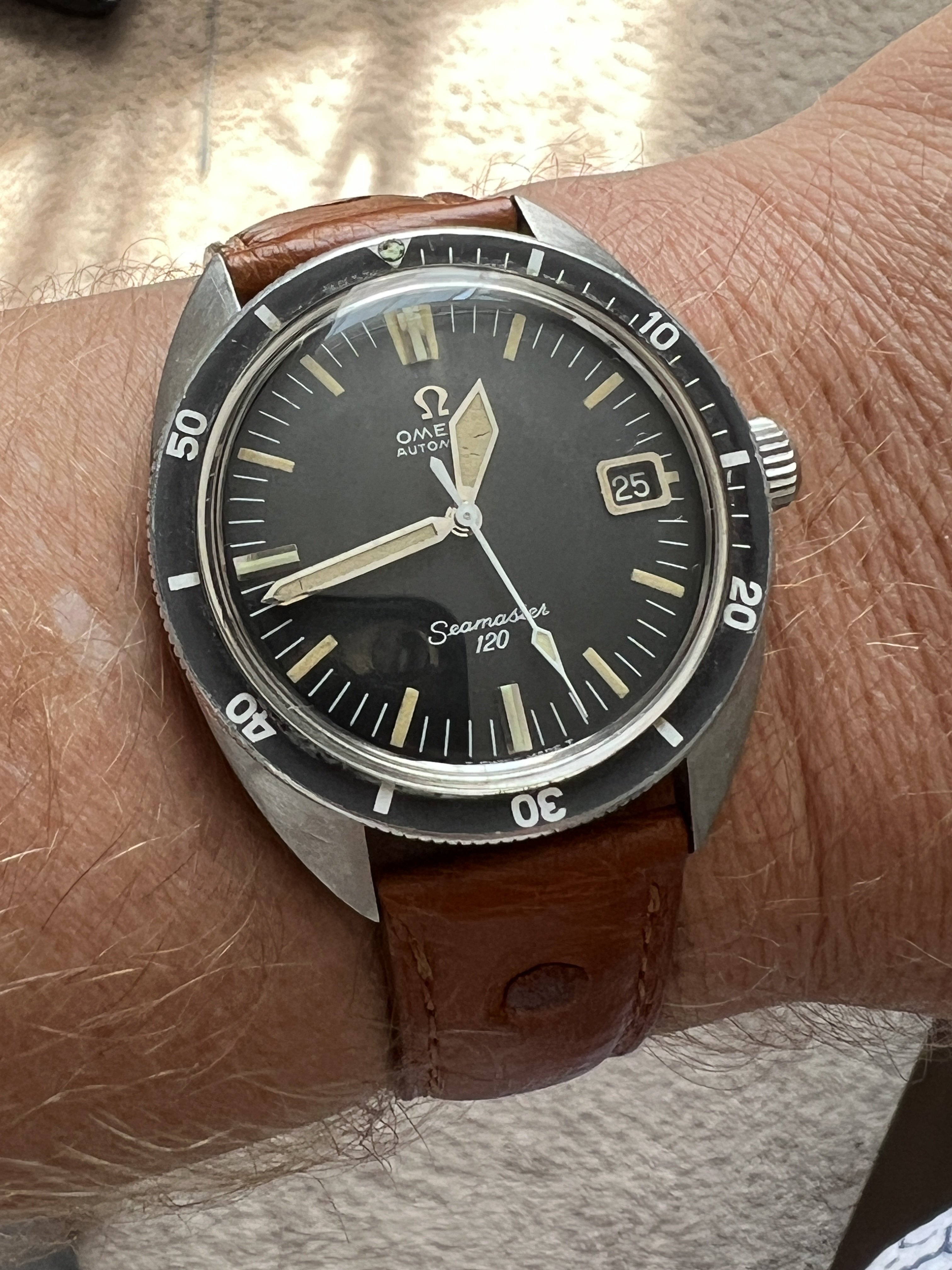 The seller claimed the hands were replaced with hands from “another Omega Seamaster 120”, so maybe they could have come from 166.073, but the hour hand for those watches looks like it has a different shape. Any insights would be appreciated.