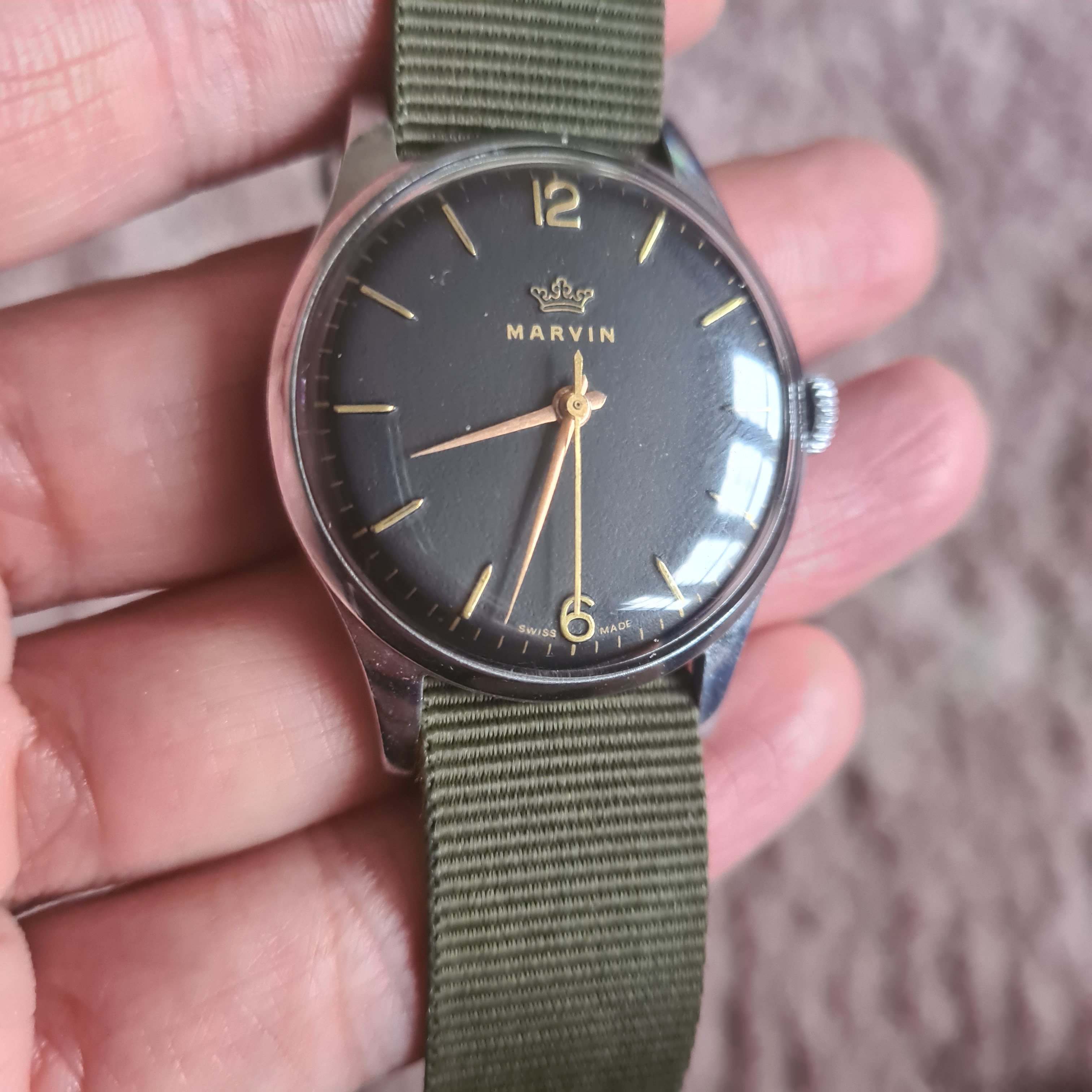 Here's my Marvin. I bought it from a seller from Hungary. I was a bit naive at the time and I now believe this could be a redial.It was a bit of a lesson. I still like the watch though and it keeps good time.