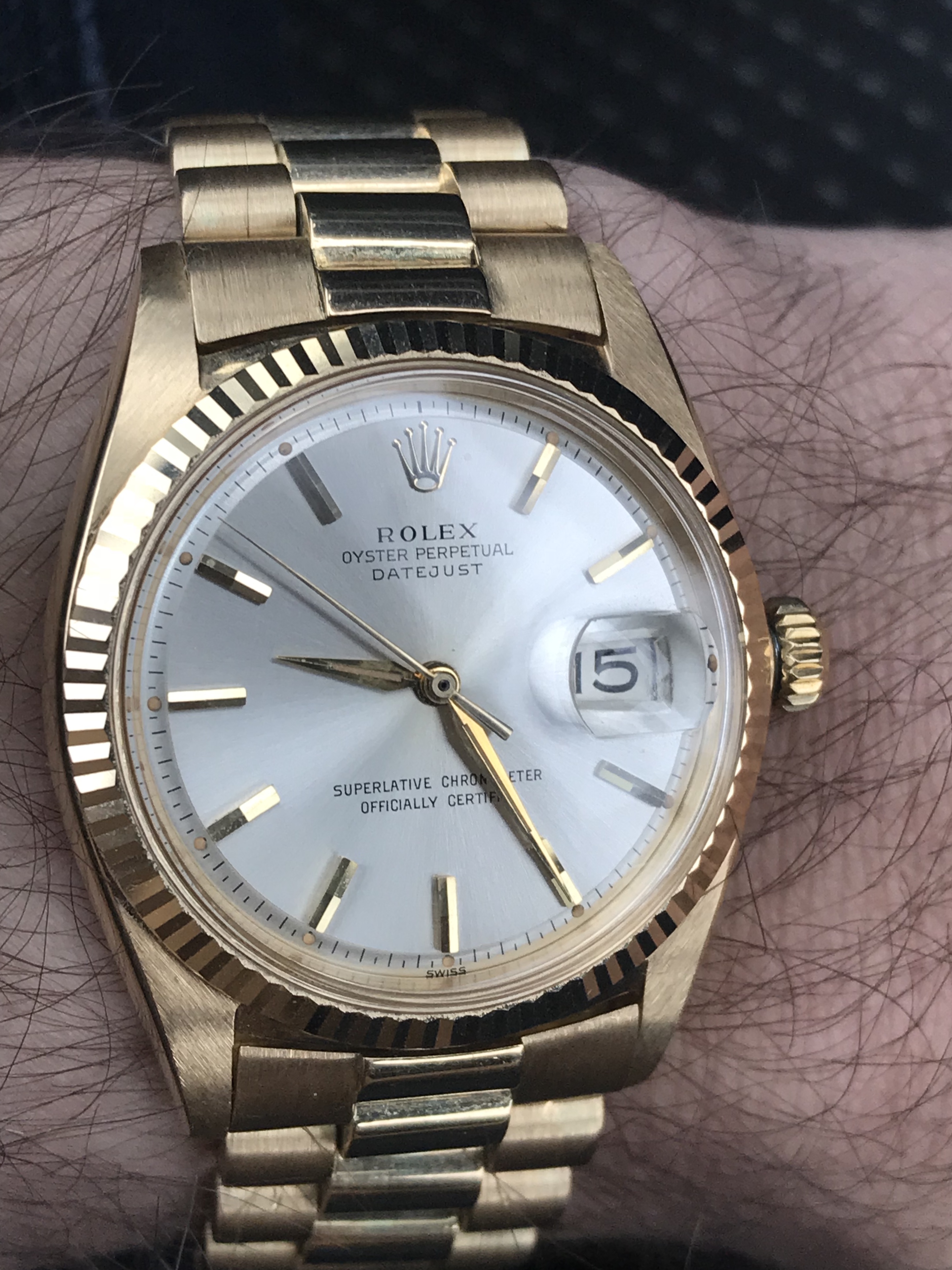 ·Can't get enough of them. I've got two, a 1500 grey sigma (like above) with smooth bezel and oyster bracelet, and a new incoming steel and rose gold 1601 with matte black dial (matte rose gold batons too) on president bracelet.