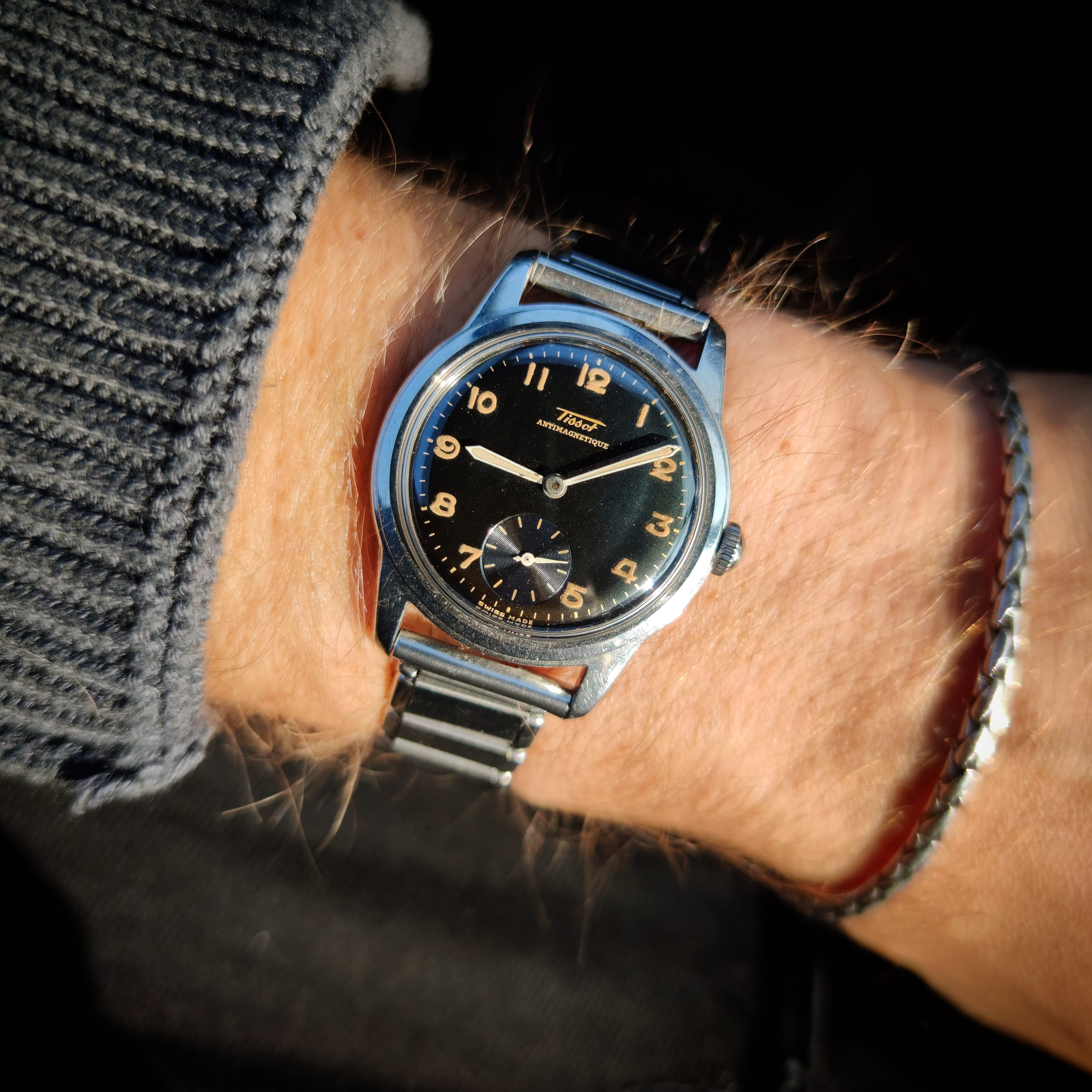 It is an example of the "Five-Star" brand for Tissot, sold primarily into Canada during the second world war. They pop up for sale from time to time on eBay, so not especially rare. You can sometimes find these with issued USA ORD markings. In the early 1950s, the Five Star brand evolved into the Seastar brand, still used by Tissot today.