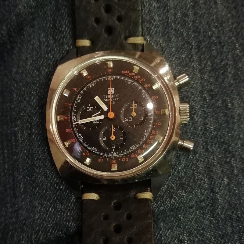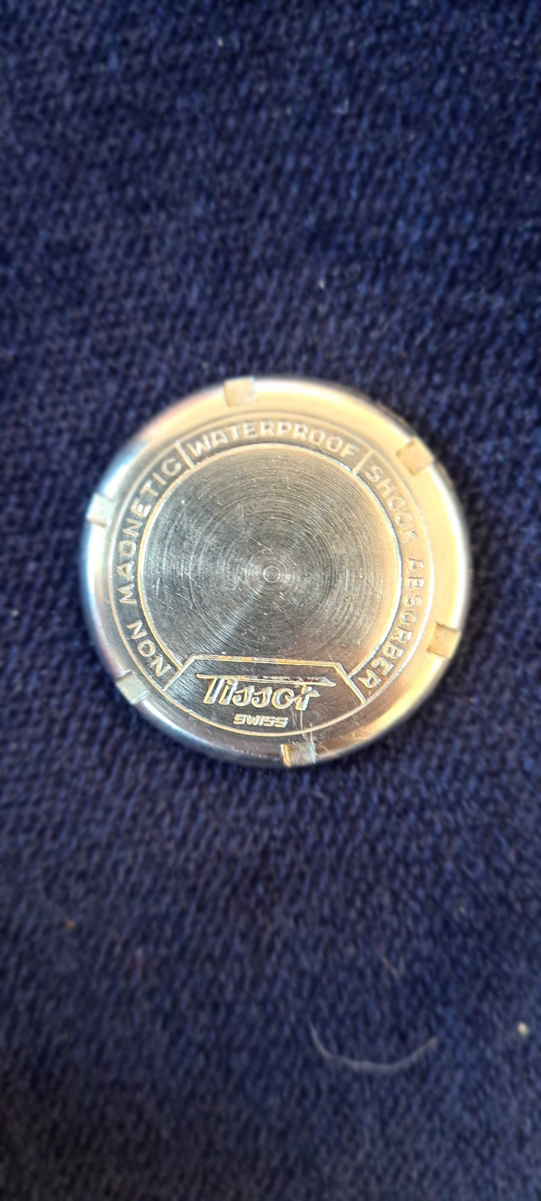 (sorry for the bad picture quality). The case is just wonderful and the dial as nice as my eyes can see... plus it cames with a box and a what looks like an original Tissot strap.
