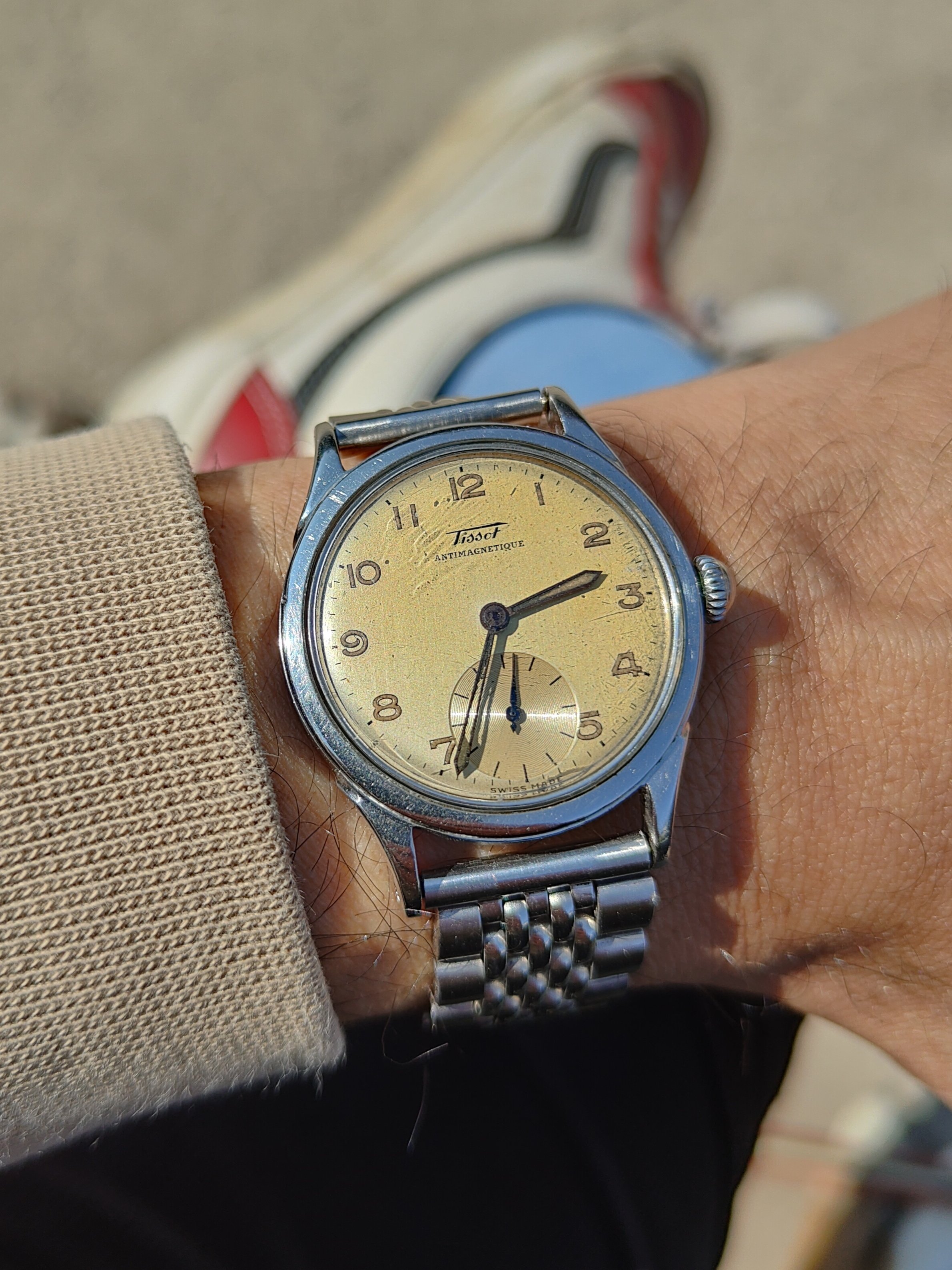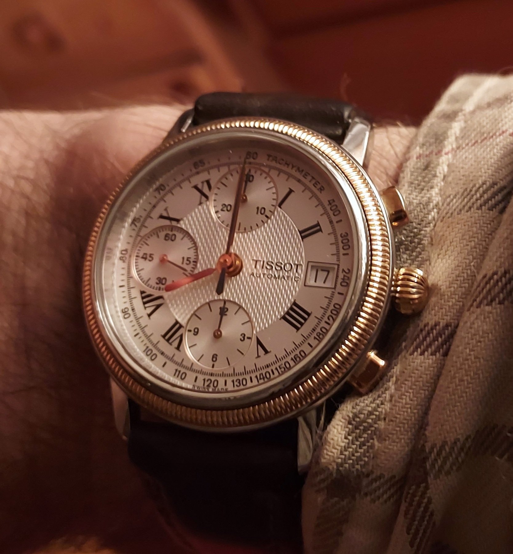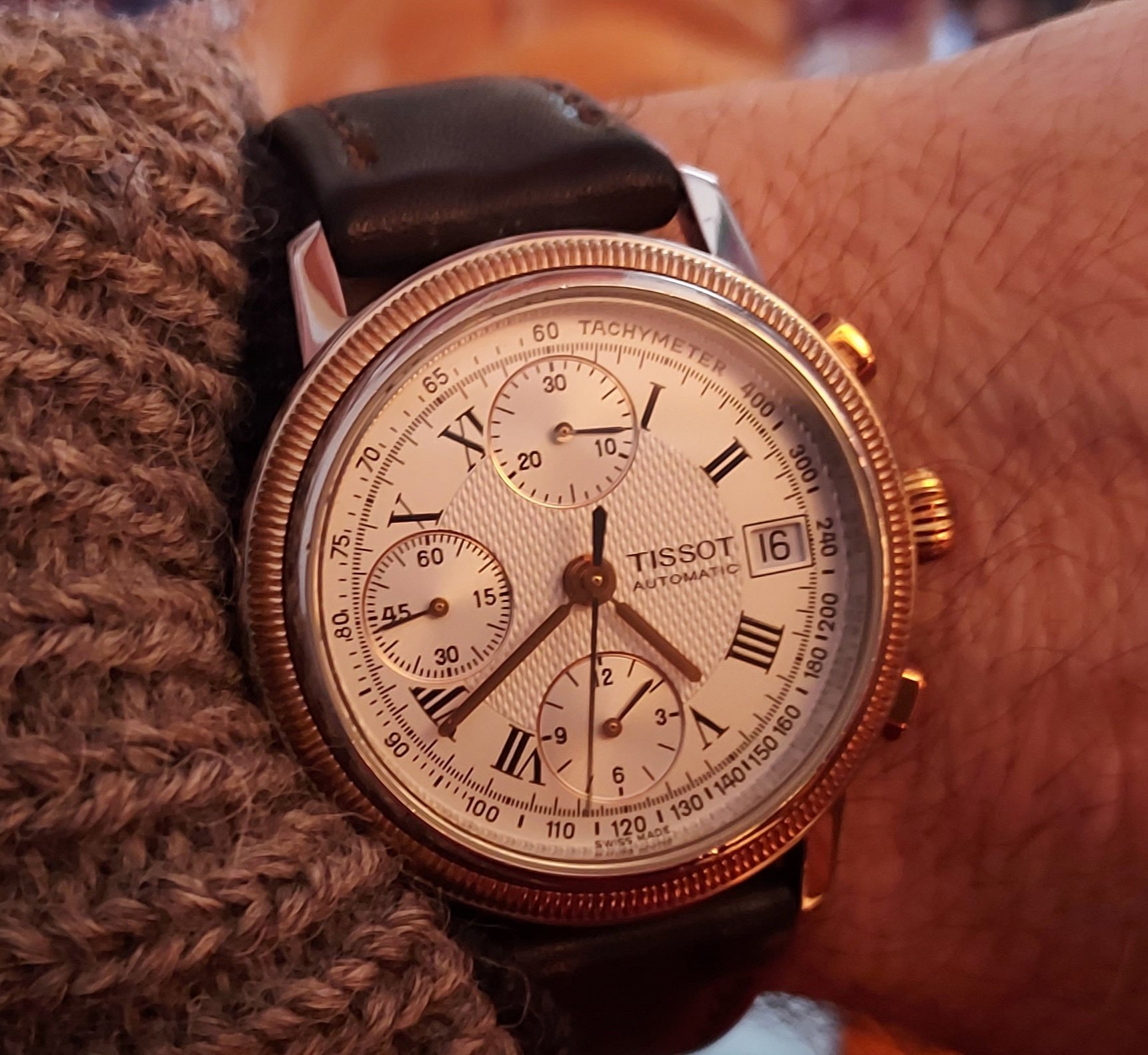 A Tissot I offered to my husband a few years ago. I wanted a bit of gold, but not too much, a nice and original dial, subdials, an automatic movement and a limited edition.