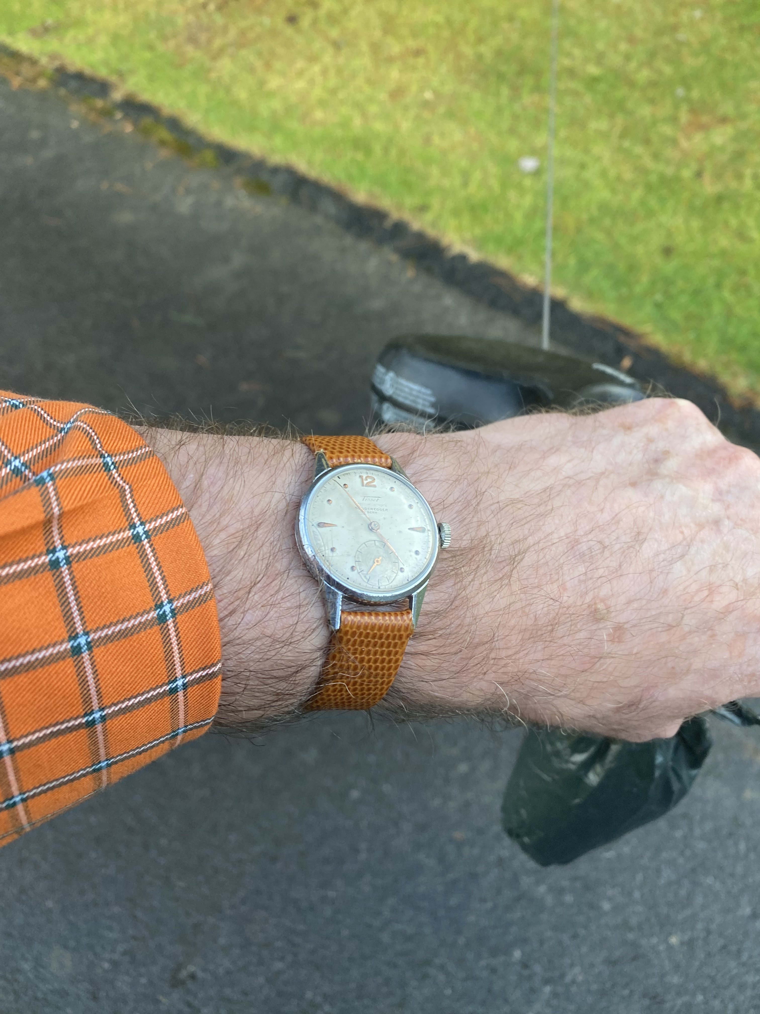 ·Here is mine, enamel dial without any hairline or chip. I bought it some 30-40 years ago for 300 DM (now 150 €) at a flea market. No repair needed, running strong and no flaws in the chronograph work. Recently I looked just for fun what is asked nowadays for these and was shocked.