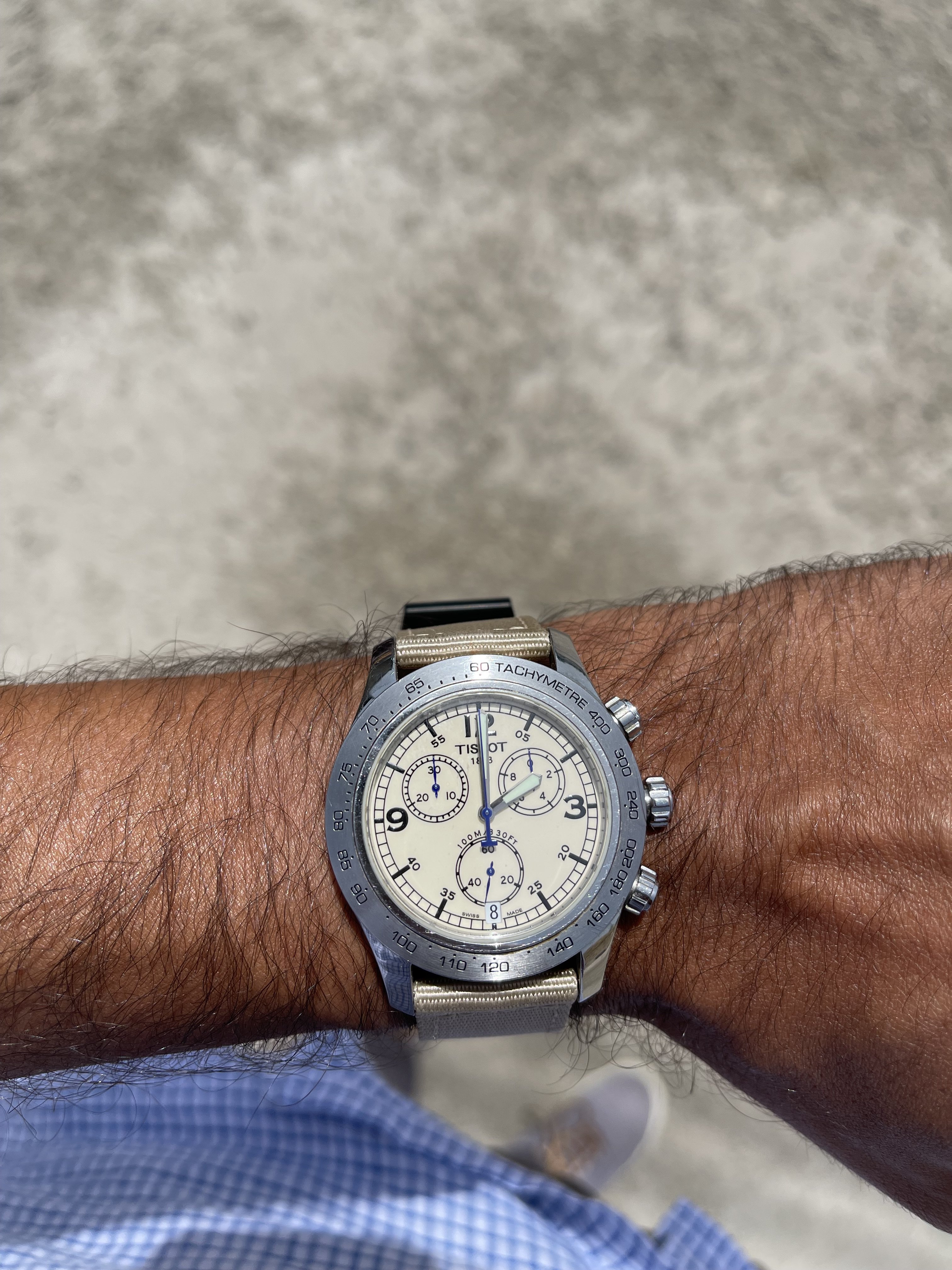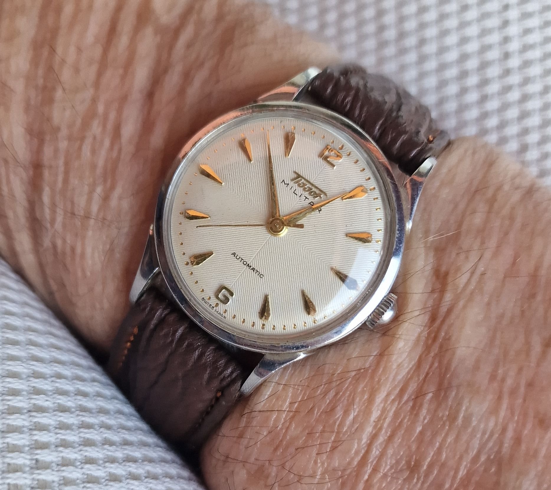 I was puzzled a little bit, because the dial did not have the "Automatic" printed on, and I consequently thought it would contain a cal. 782 (manual winding). But upon gentle shaking one clearly hears the automatic winder (and it starts running), thus it contains a cal. 784. I did not open it yet though. A "redial" appears very unlikely to me.