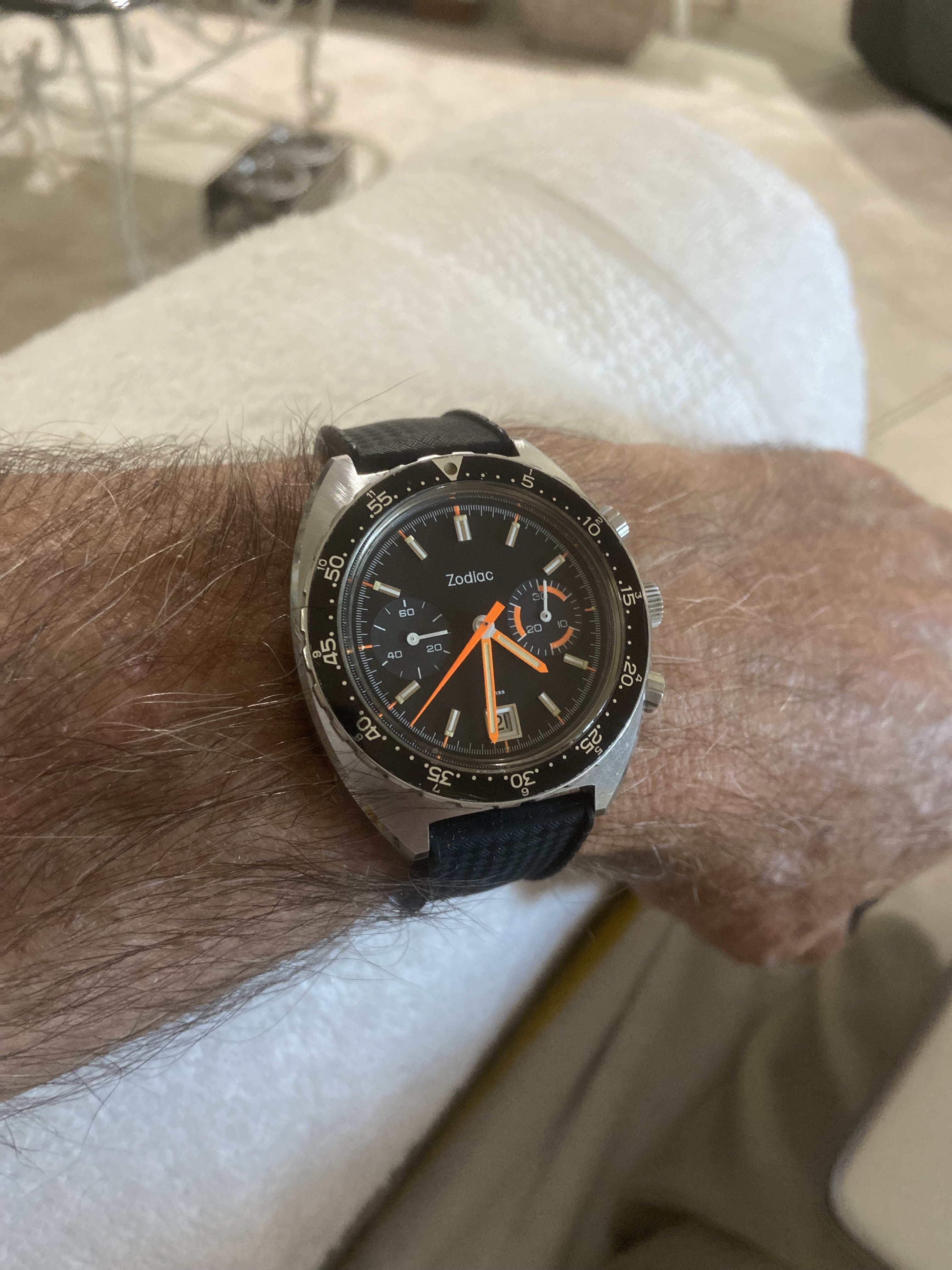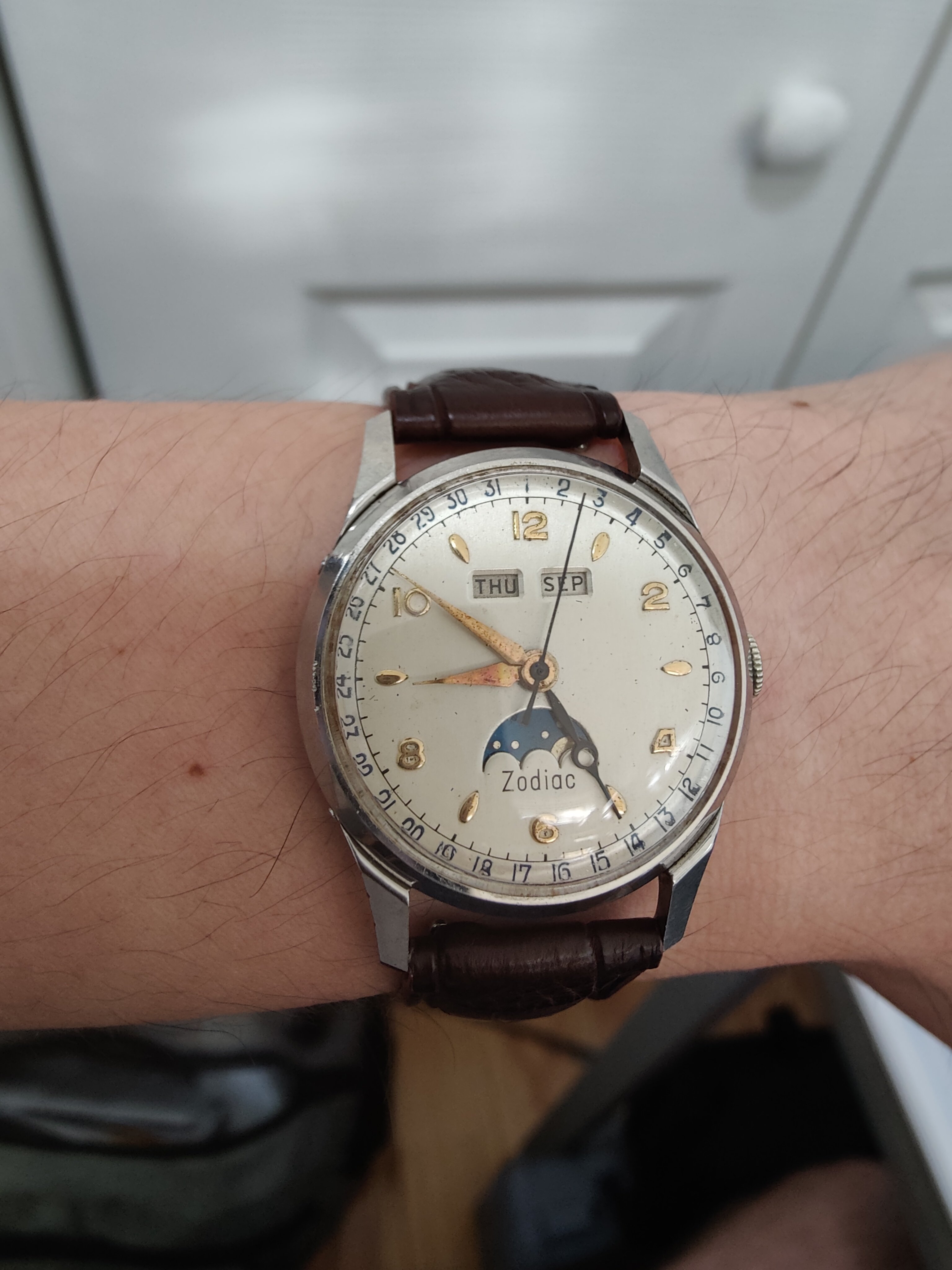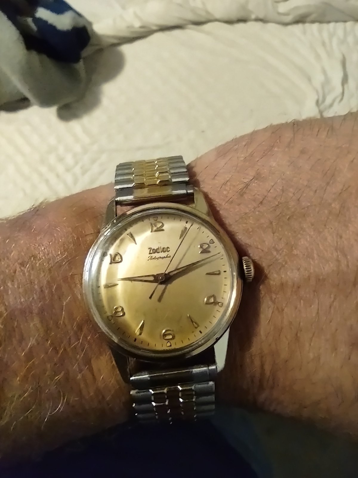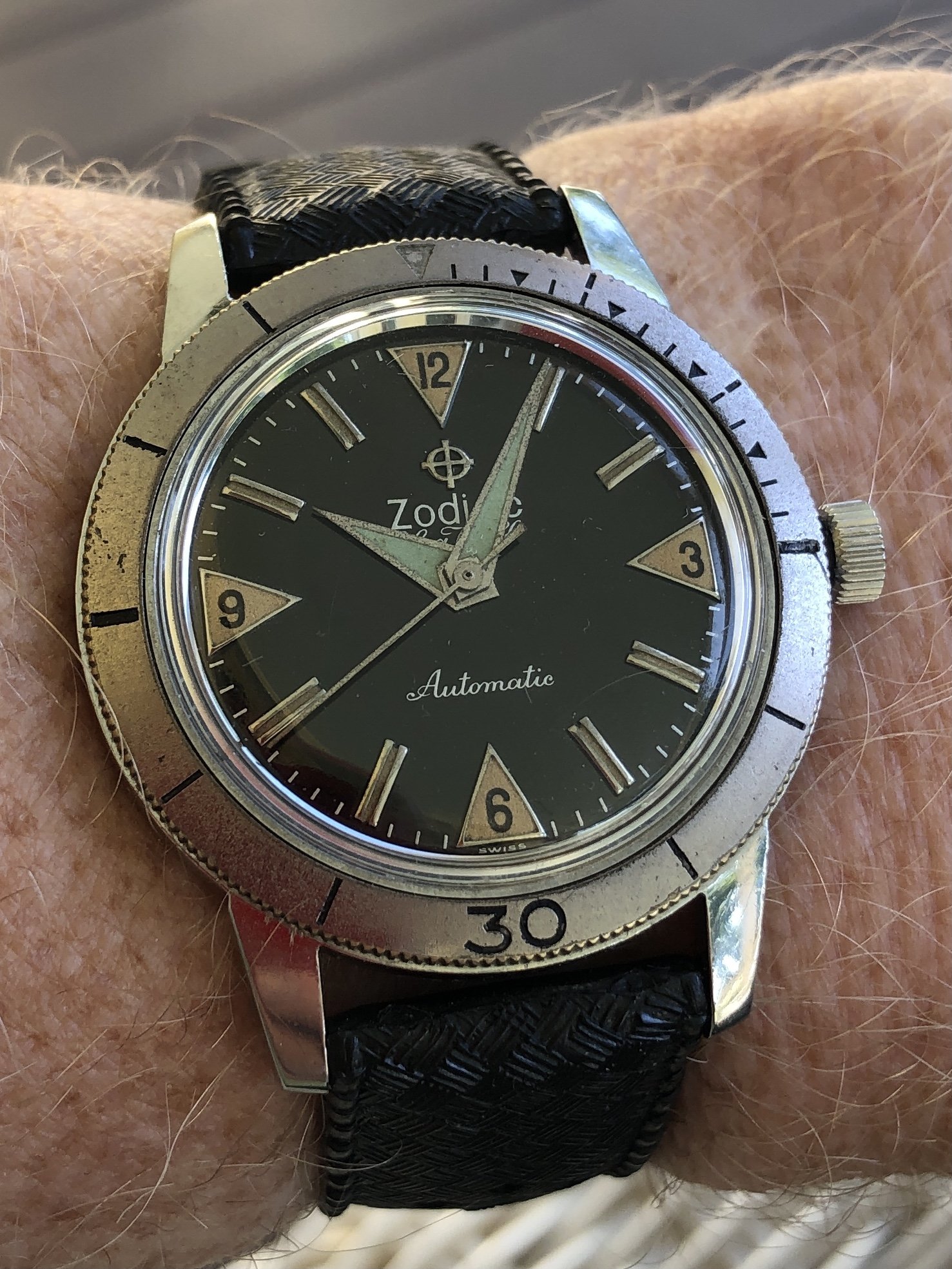 My vintage zodiac rotographic. Runs great. I own a vintage omega seamaster and a Omega bumper automatic and honestly this is probably my favorite. 75 dollar zodiac