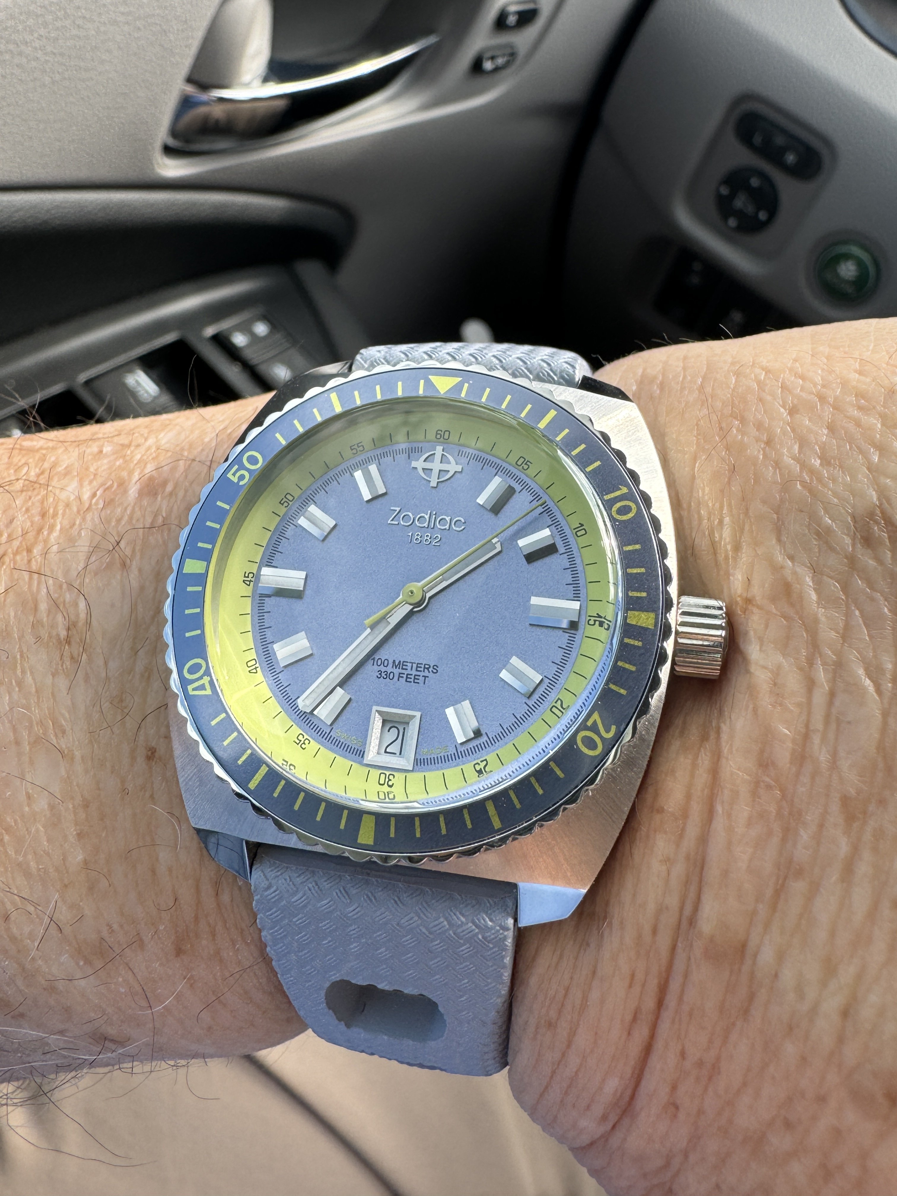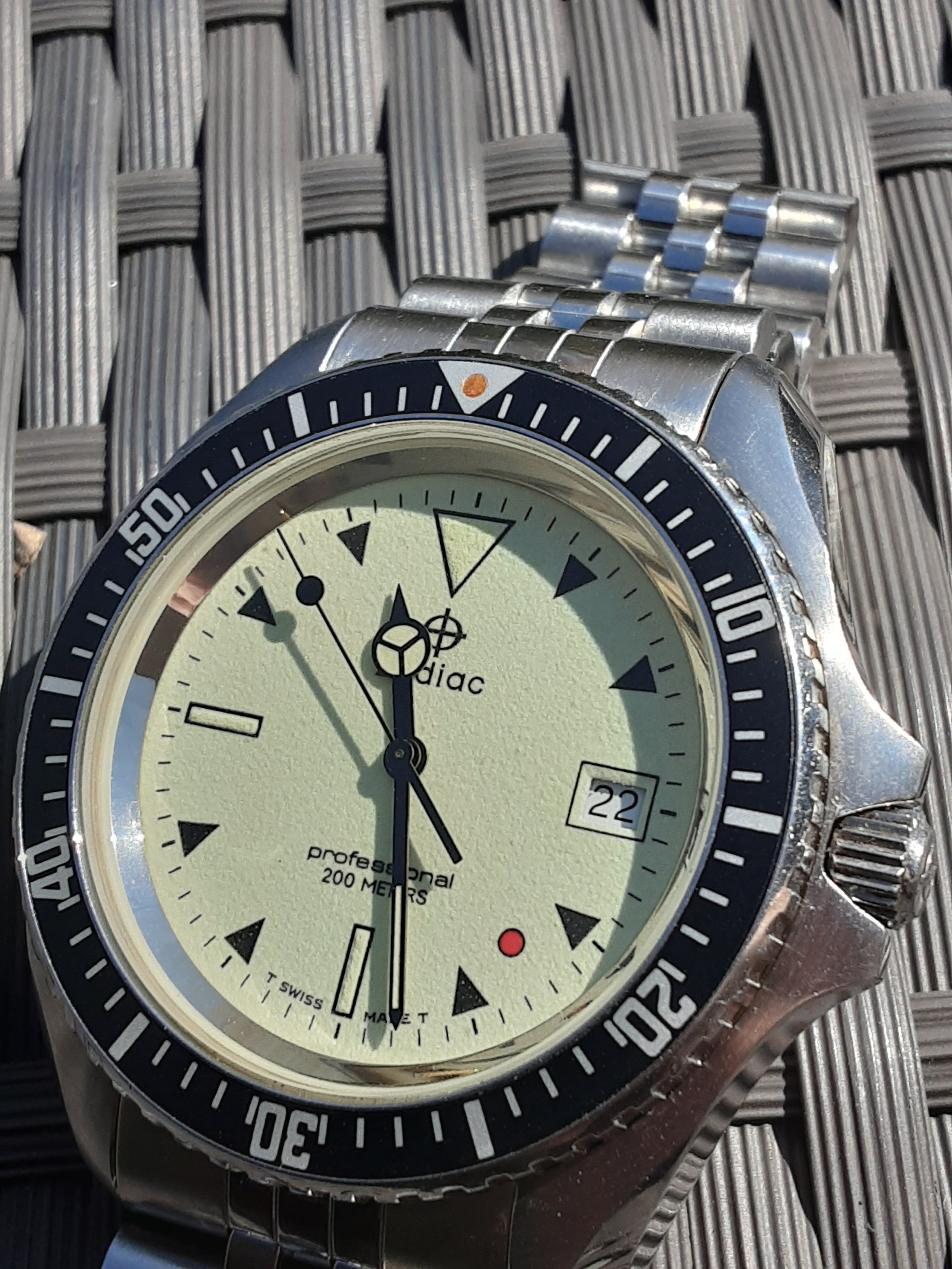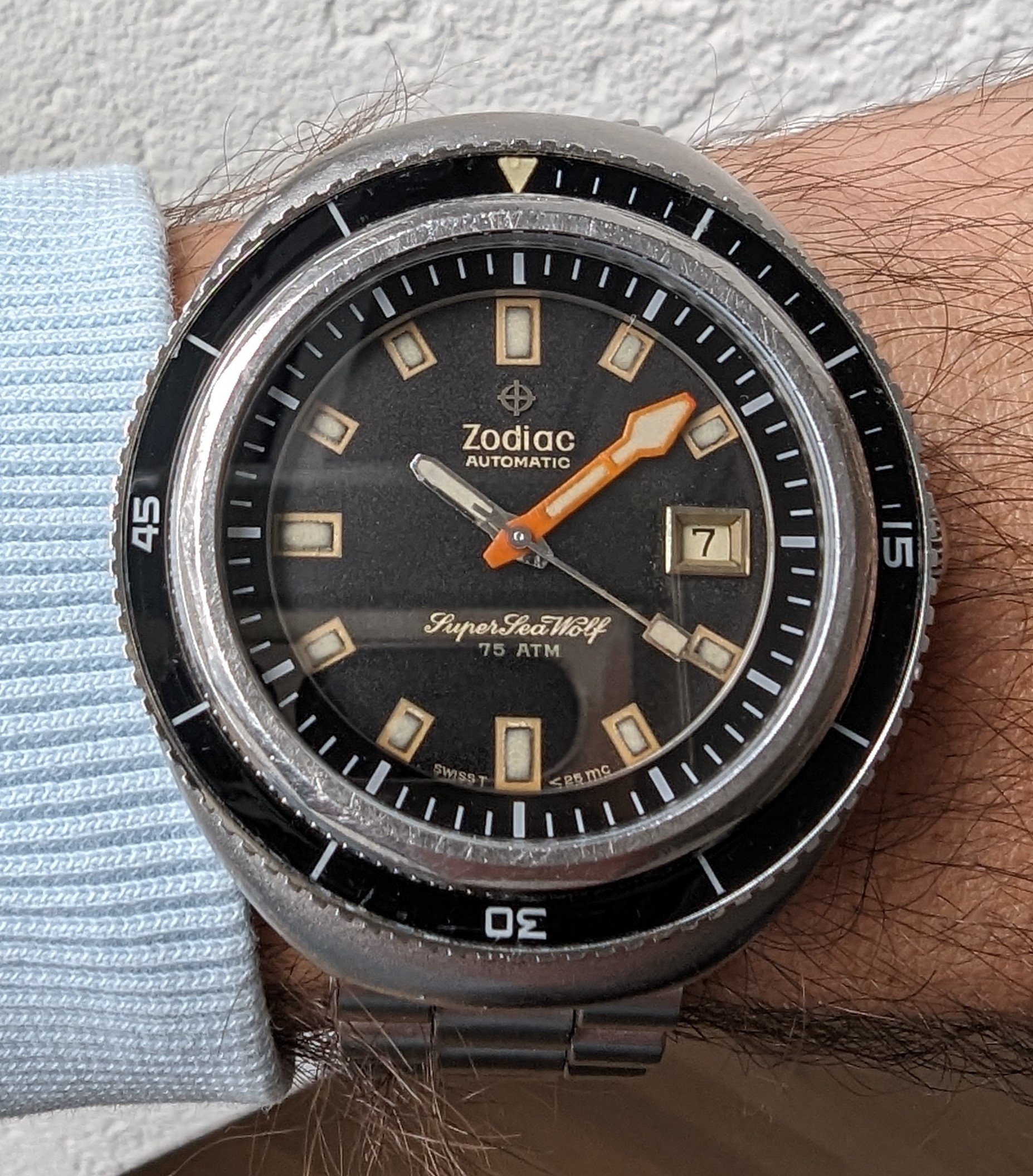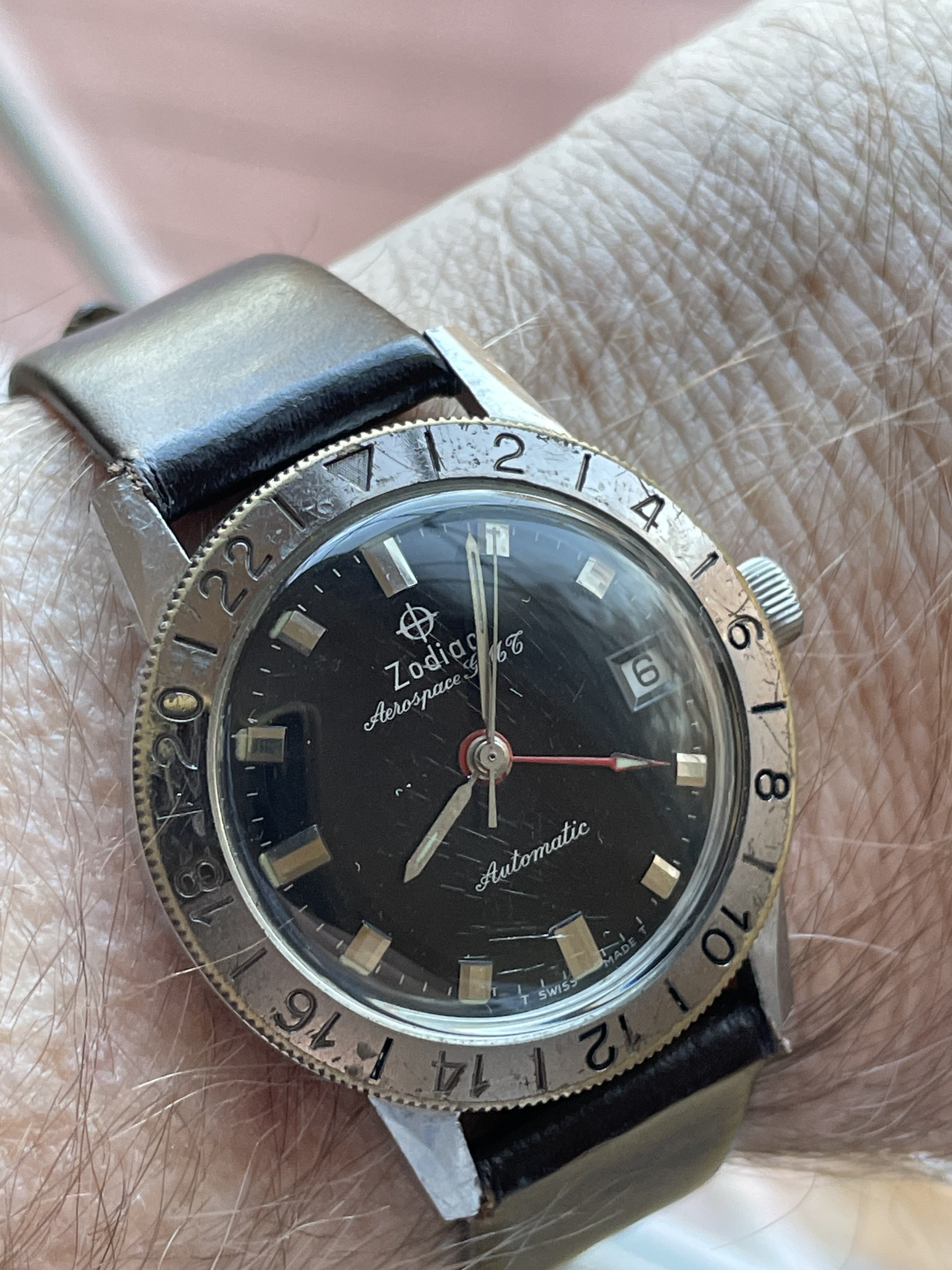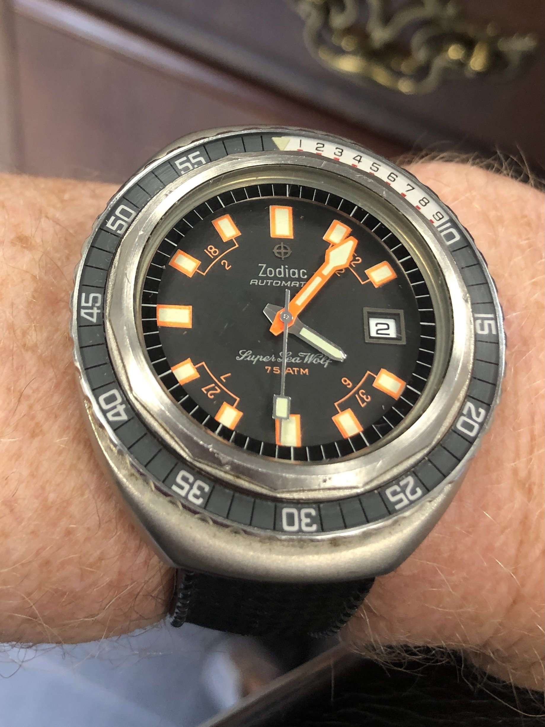My vintage zodiac rotographic. Runs great. I own a vintage omega seamaster and a Omega bumper automatic and honestly this is probably my favorite. 75 dollar zodiac