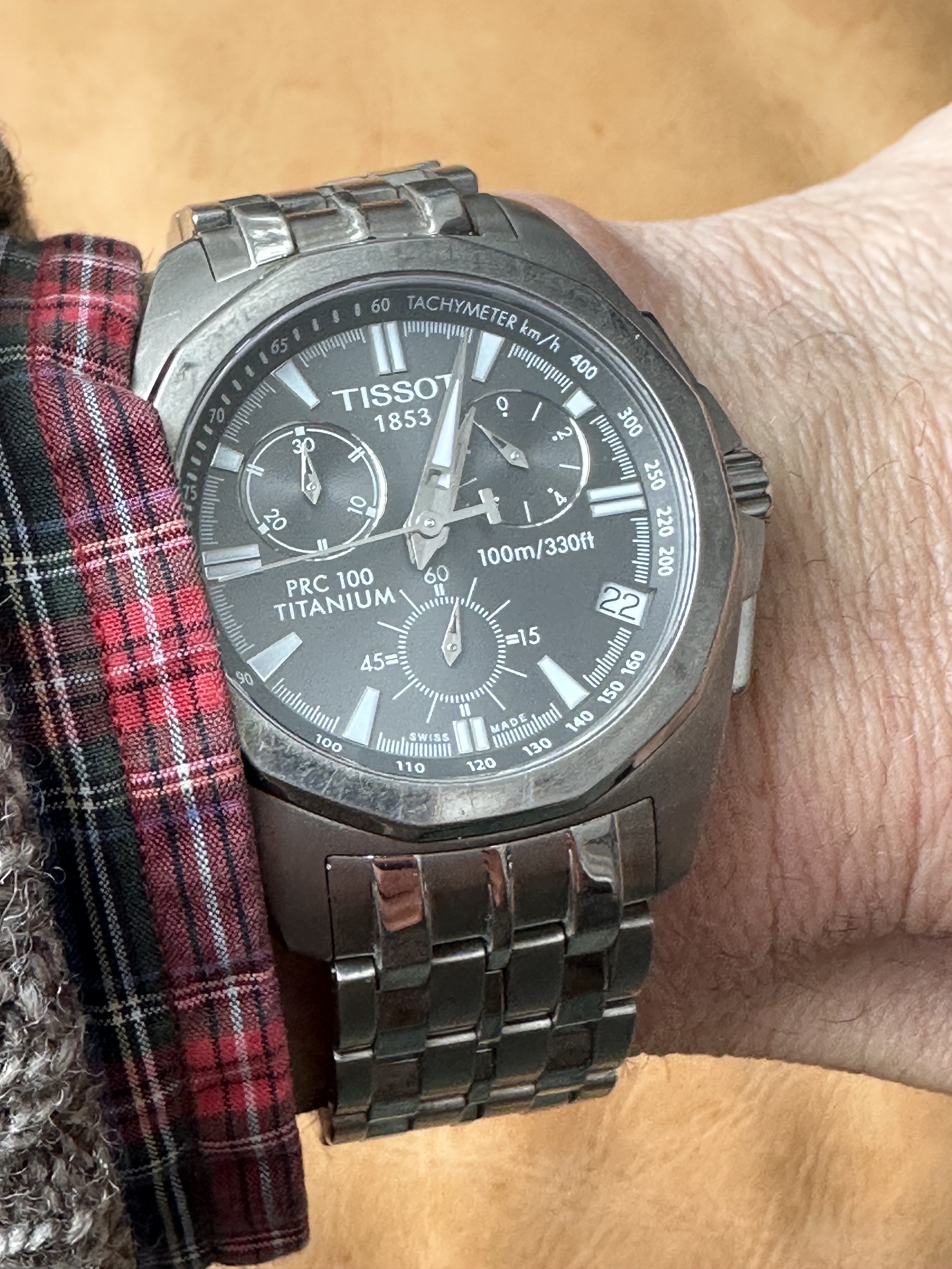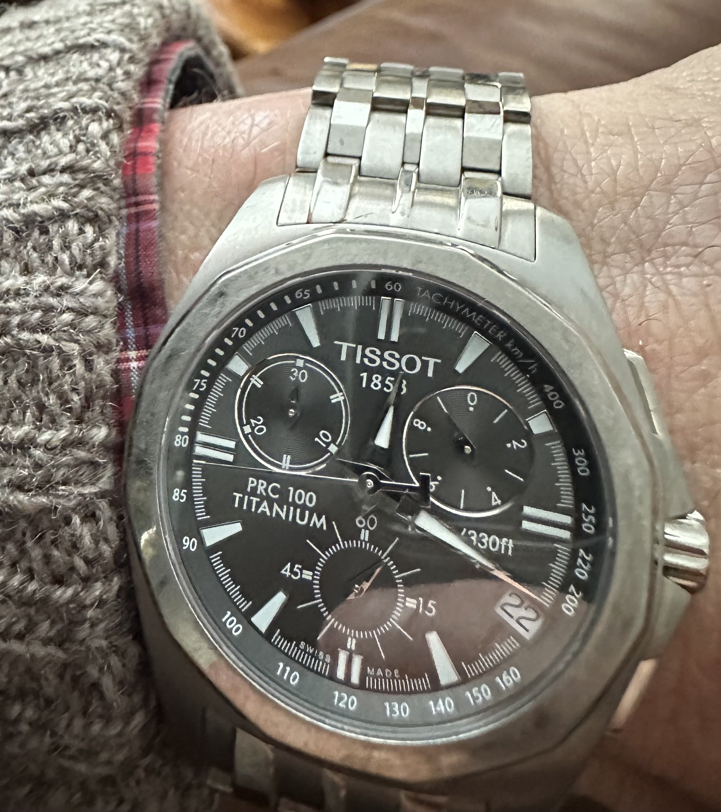 It’s a Tissot Quartz, but the watchmaker put the same amount of care in it as he would in a 1960s Speedmaster.