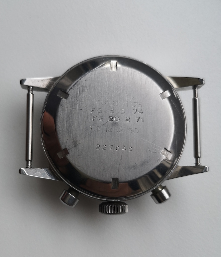 The FG marks are still visible on the caseback. The earliest is 20/02/71 and the latest is 12/12/80. That would give an original issue date of 20/02/69 as they were stamped for 2 years.