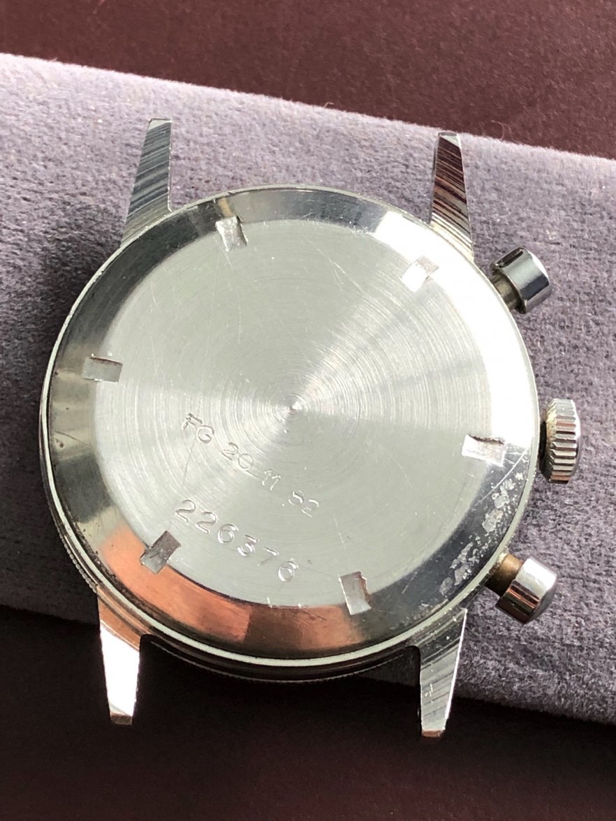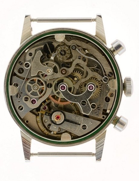 - Valjoux caliber 222 17 jewel chronograph movement with “retour en vol”/fly back feature