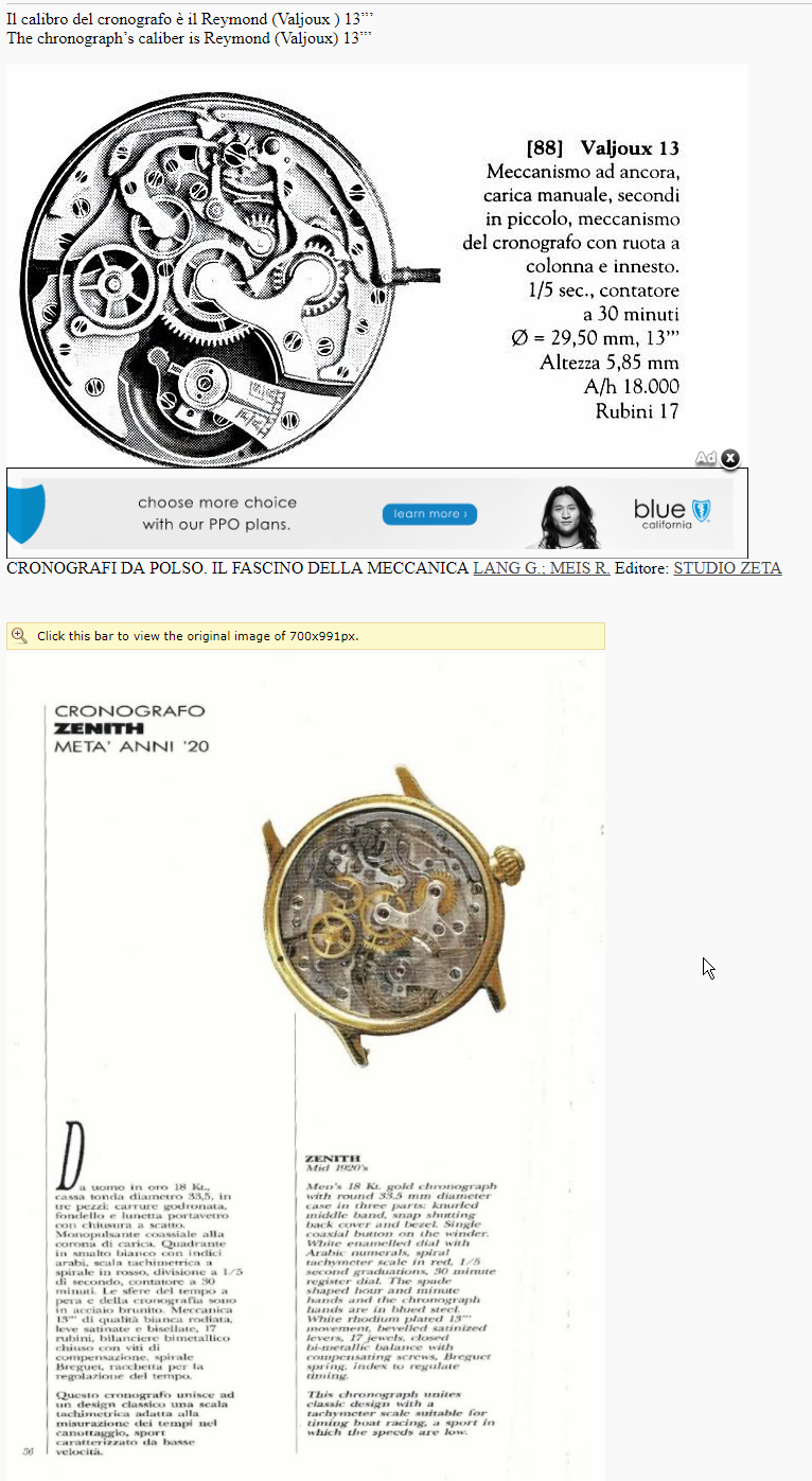 ·Firstly, thank you @Ubik for posting that advert. I have an image of it saved somewhere but it slipped my mind. Secondly, I believe that the watch in the advert likely contains a Longines cal. 13.33Z, rather than a Valjoux movement as @Seiji suggests, due to the location of the chronograph pusher (but I could be wrong). Below are two examples of the 13 ligne, Valjoux movement.