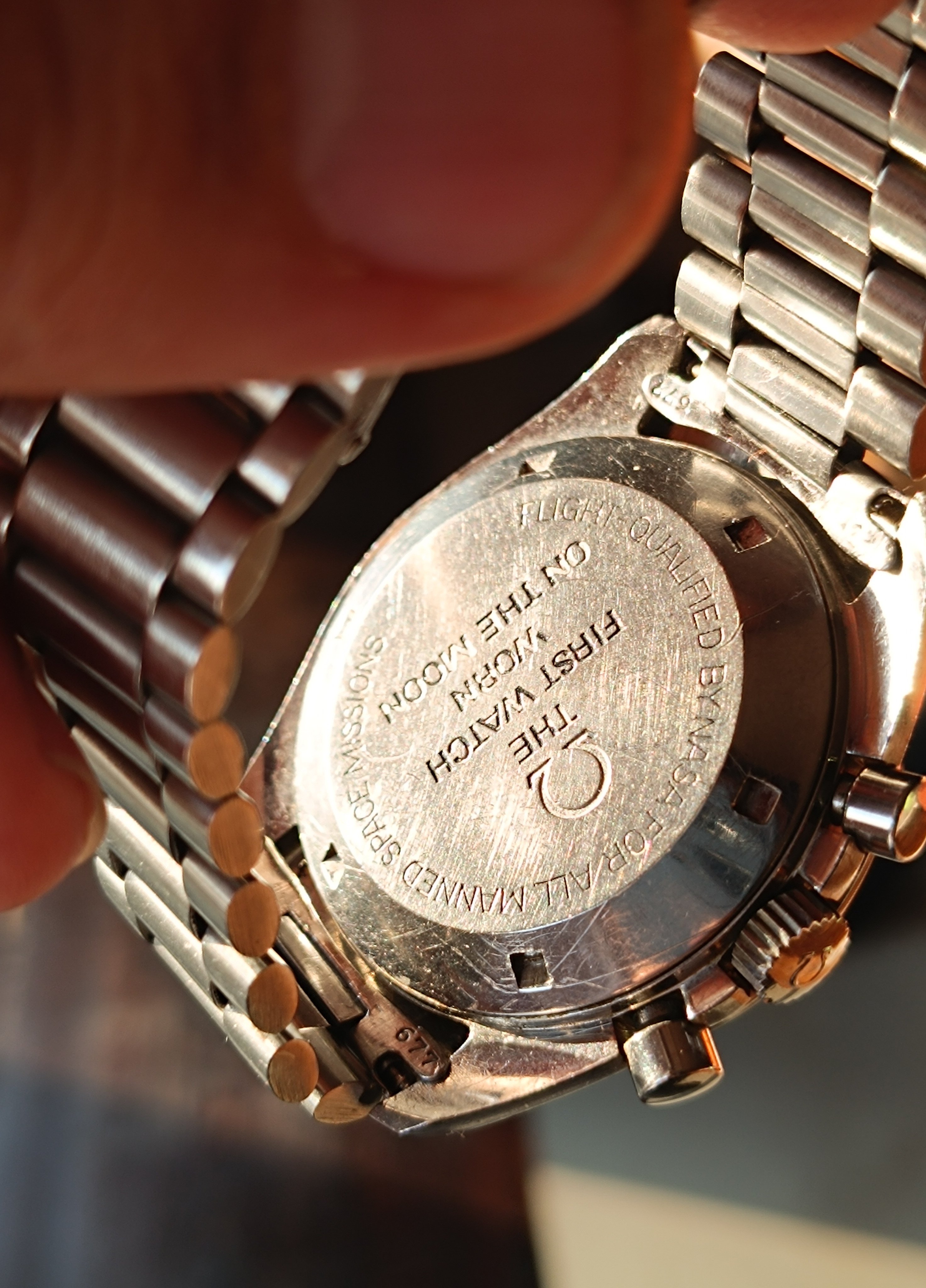 Around Oct 1971, the first medallion no NASA casebacks appeared, based on the movement numbers. These seem to have only been available two months. It's been said that these new medallion casebacks did not have inscriptions on them because NASA may have not approved of the text that was on the SW FQ.