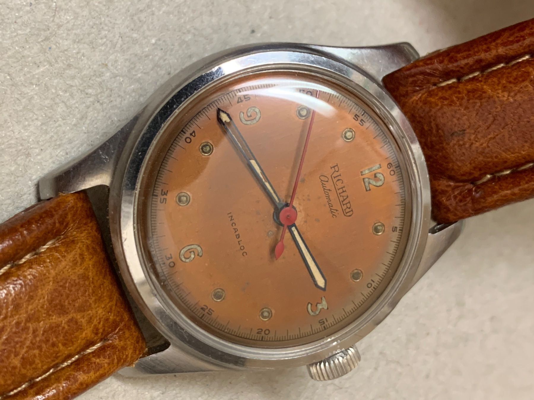 It's a Richard (ref 91431) with a bumper movement. According to the seller, it's from 50ies.