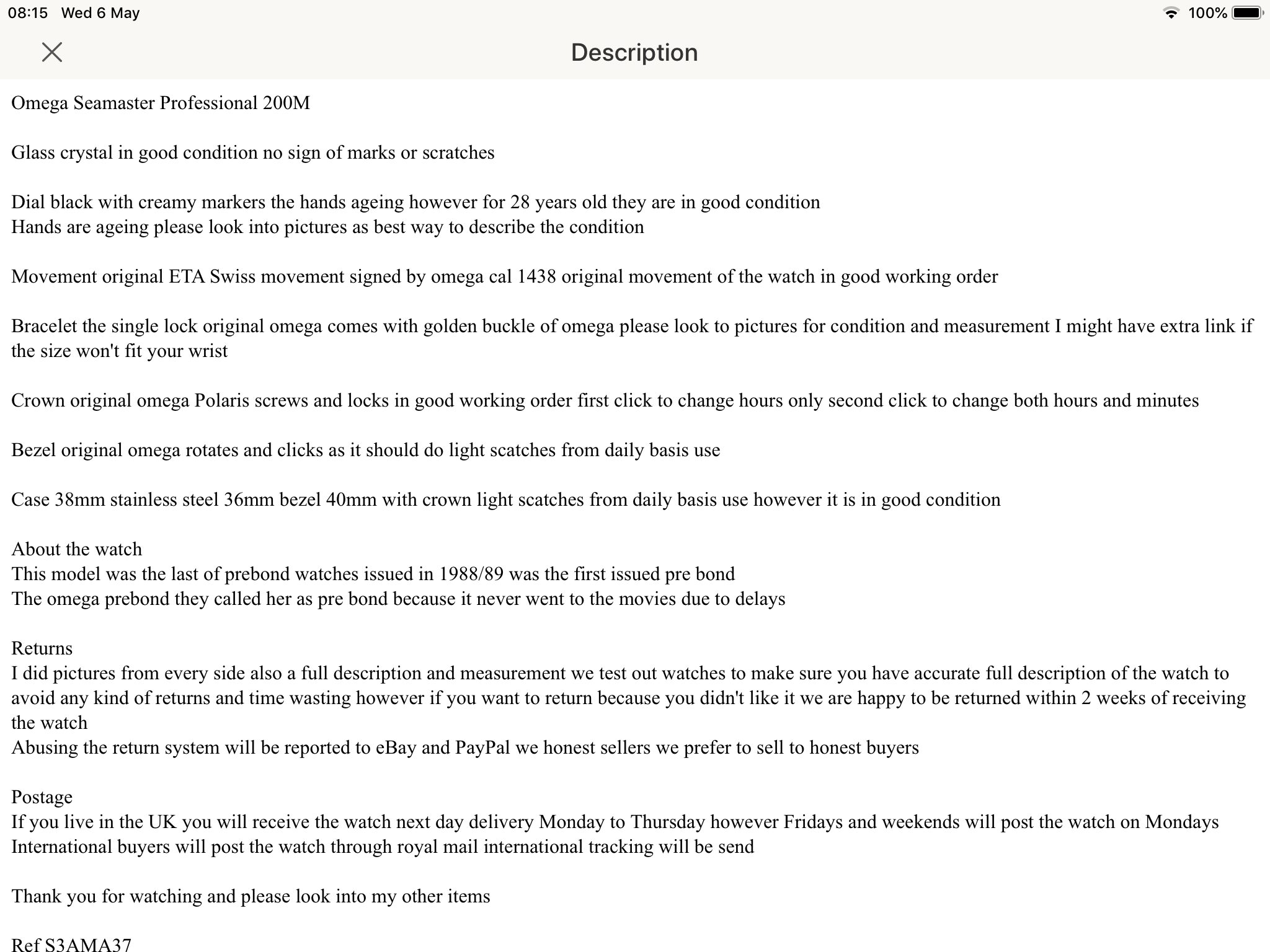 ·Firstly thank you to all those who commented on my water ingressed piece last time - really helpful and saved me from giving a gift that wasn’t as good as It could have been. I have had a look at this , a nd in my very amateur opinion it could be real ? The second hand comes out to the far edge, no spelling errors and there does seem to luminous material still. Just wanted an opinion from far, far more experienced people. Thank you