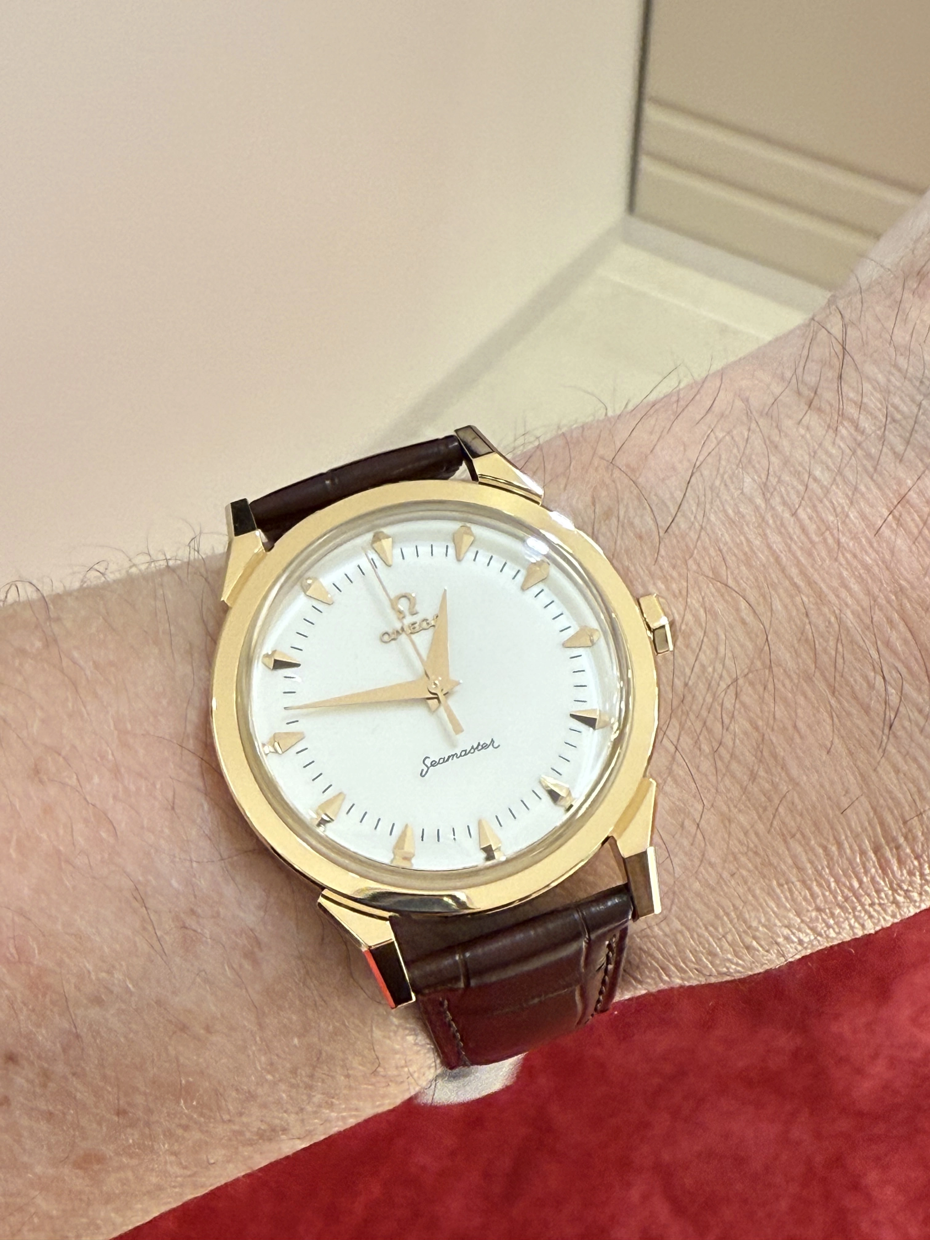 路The facets/ contours on the case on this one is not as sharp as some of the pristine vintage SS examples showcased in the forum. So am I right in speculating that the solid gold vintage cases were also never as sharp as the SS versions from the factory. This will make sense as gold being a softer metal will pick up dings on the edges if they made it too sharp.