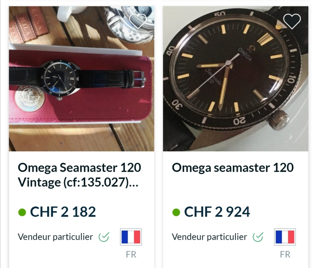 Artificially aged, fake-kit, grey dial "Seanaster" 120 on C24: https://www.chrono24.com/omega/omega-seamaster-120-vintage-manual-wind-135027--id10905254.htm