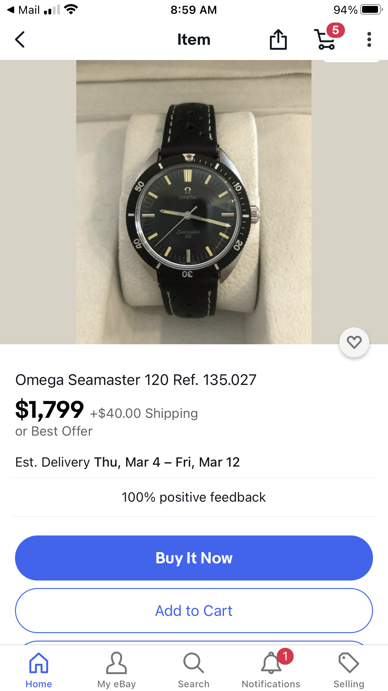 "so listed this watch yesterday and it seemed to grab a lot of attention, I was inundated with questions, requests for more photos, buy it now prices. It was even being bid up by some user with 1 poor feedback from South korea??? 1 user even claimed it was counterfeit. Eventually after trying to cancel bids etc the post was removed by ebay."