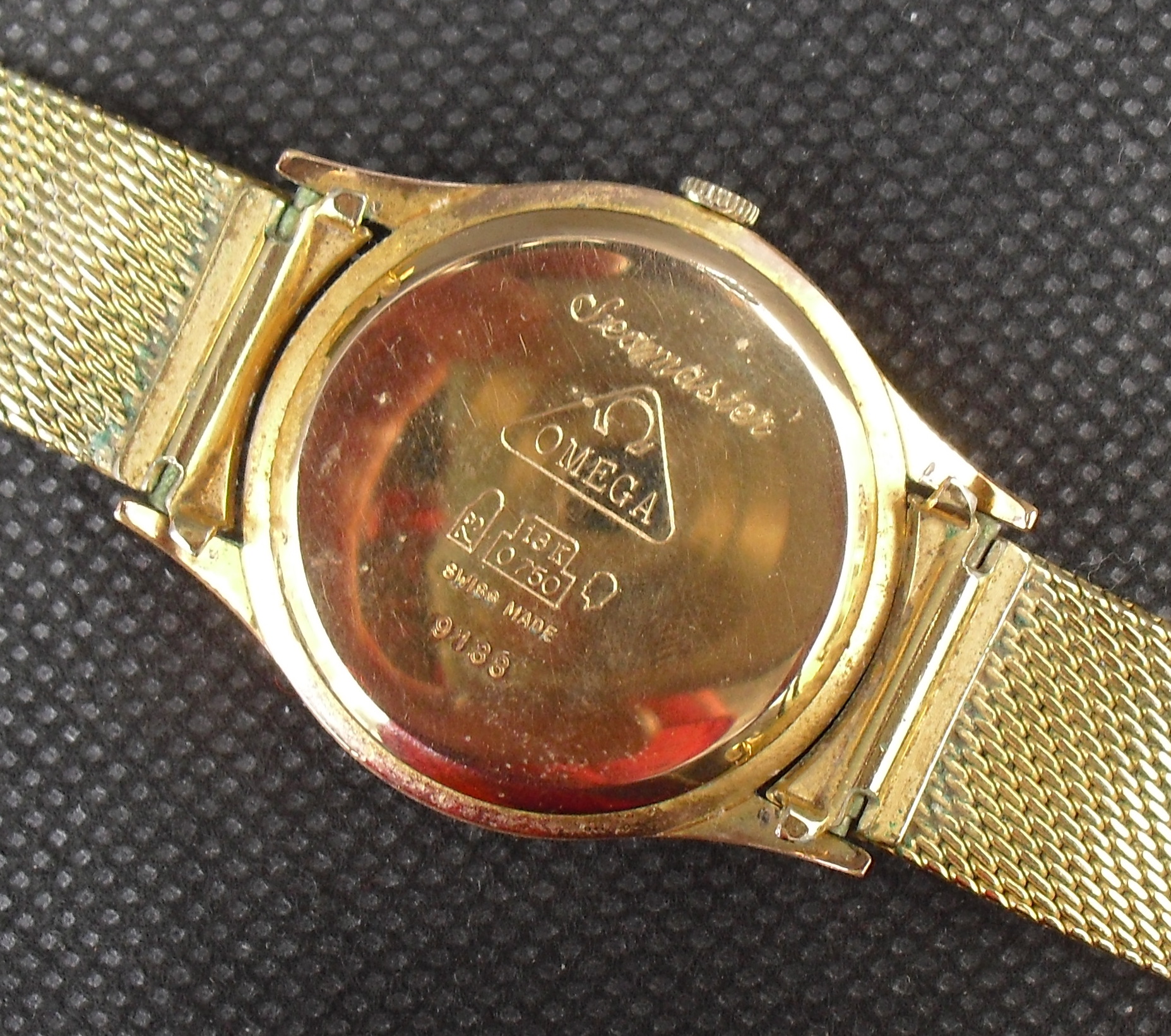 First, you won't find "antimagnetic" or a jewel count on the dial of any Seamaster. Second, that's one crappy movement. Omega copper plated their movements since the word Seamaster has been used on the dial. Third, Omega never put the hallmarks (like the Ω WATCH Co inside the triangle or the 18K 0.750) you see on this watch's caseback on the outside - they were always on the inside.