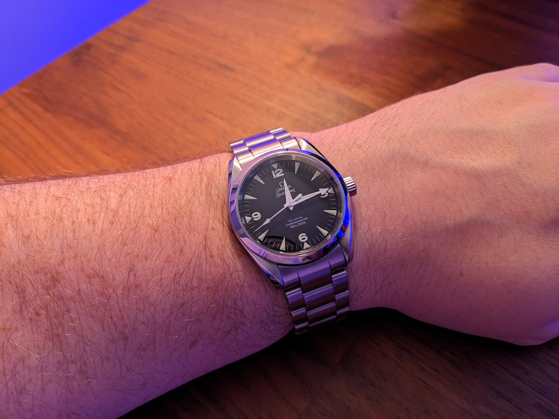 I recently bought a second half link for my Aqua Terra first gen (Actually Railmaster) bracelet. I've really struggled with the fit of this bracelet on my 18 cm wrist, it's either way too loose or slightly too tight in warmer weather. Measuring out the links, the half link is slightly larger than half of a whole link. On my 36 mm watch (19 mm lug width, 1675/899 bracelet) the half link is 5 mm and the whole link is 8 mm. So I decided to buy a second half link from Omega so I could replace an 8 mm whole link with a 10 mm double half link for a 2 mm increase, rather than adding a half link for a 5 mm increase.