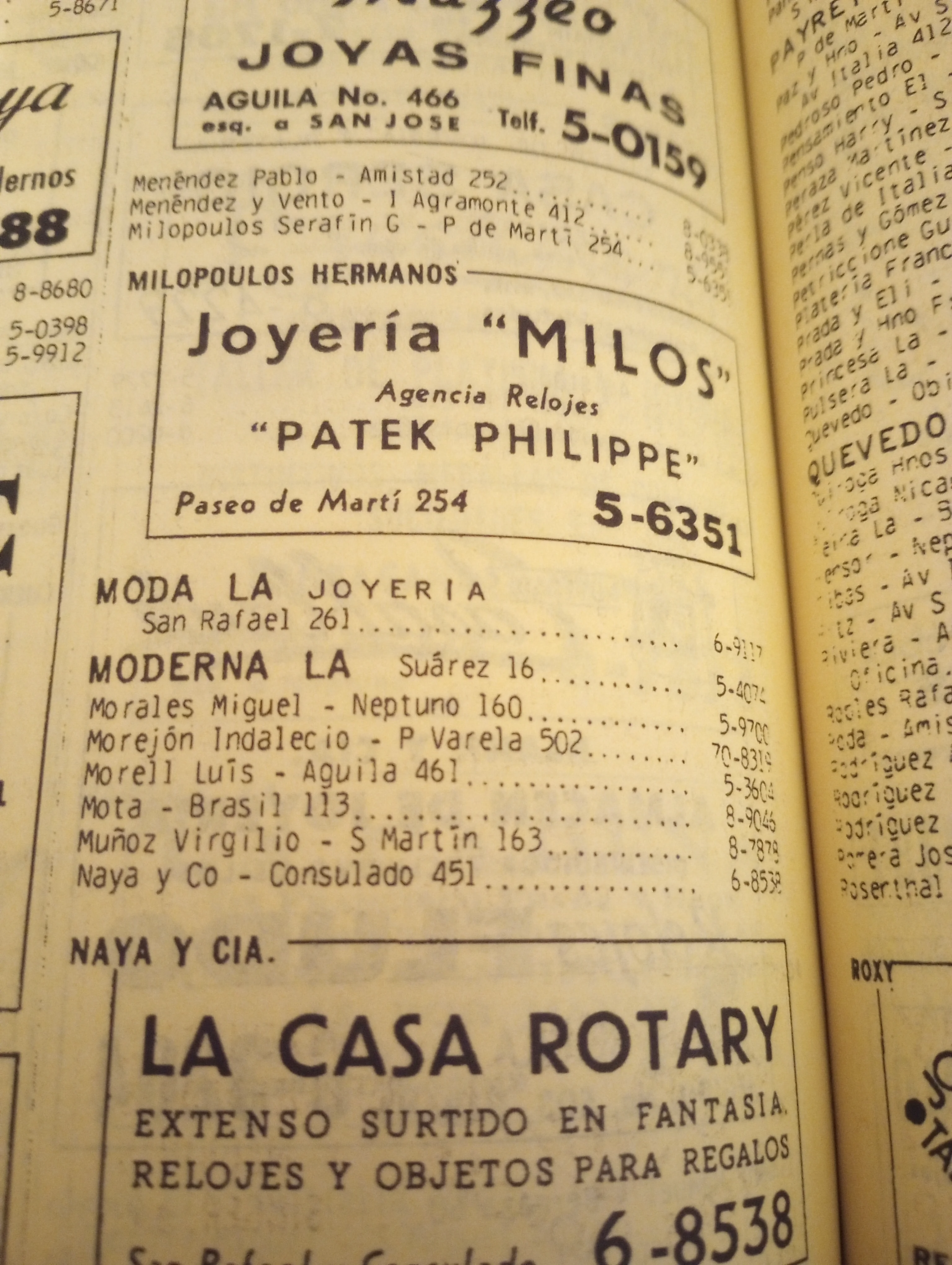 Hello everyone. My grandfather was Seraphim Gregorio Milopoulos. Owner of Joyeria Milos in Havana Cuba! My grandfather Seraphim was the Greek Ambassador to Cuba!
