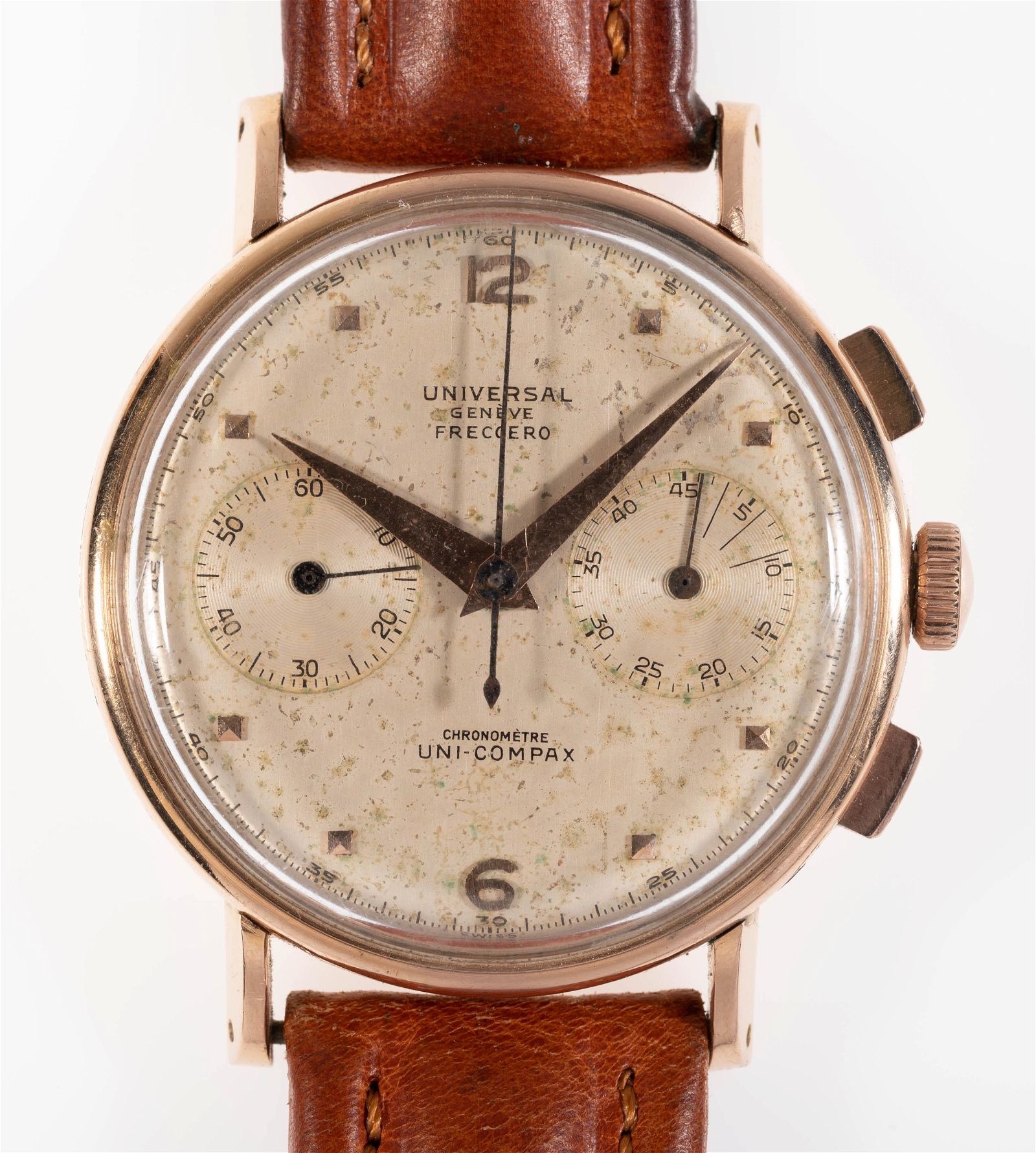 ) https://www.barnebys.fr/ventes/obje...versal-watch-582705-men-1901-1949-7JdgmIFaz2xFreccero 12568: https://www.liveauctioneers.com/ite...-feccaro-18k-rose-gold-chronograph-wristwatch Can recall ever have seen this printing (but I think it is legit)