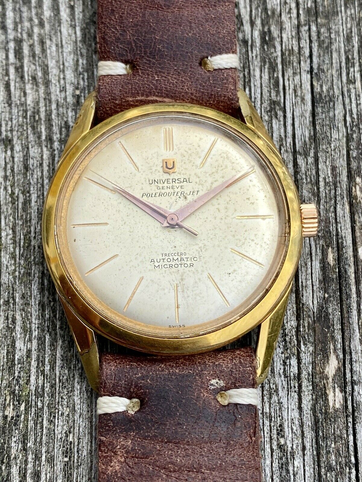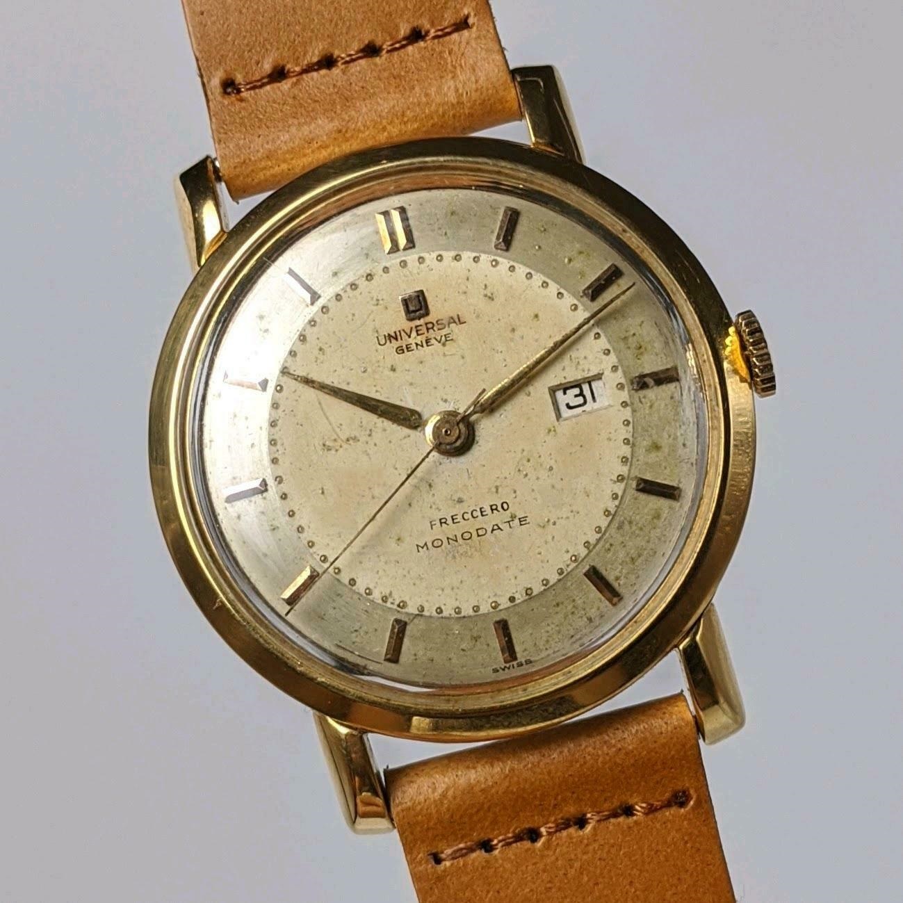 Posts 1,202 Likes 3,050 Mazoue ·Oct 13, 2021 Mark020 Nice Freccero sold at ebay: https://www.ebay.co.uk/itm/Universal-Geneve-Polerouter-Freccero-Stamp-Dial-Uruguay-Equivalent-Of-Tiffany-/114872311115?hash=item1abeec5d4b:g:x~wAAOSwWBhgv3Vq&nma=true&si=PV4BAFOMMICiey0yTruBX9DO6dQ%3D&orig_cvip=true&nordt=true&rt=nc&_trksid=p2047675.l2557 This one passed through my hands. Unfortunately it was in pretty poor shape. This website may earn commission from Ebay sales.