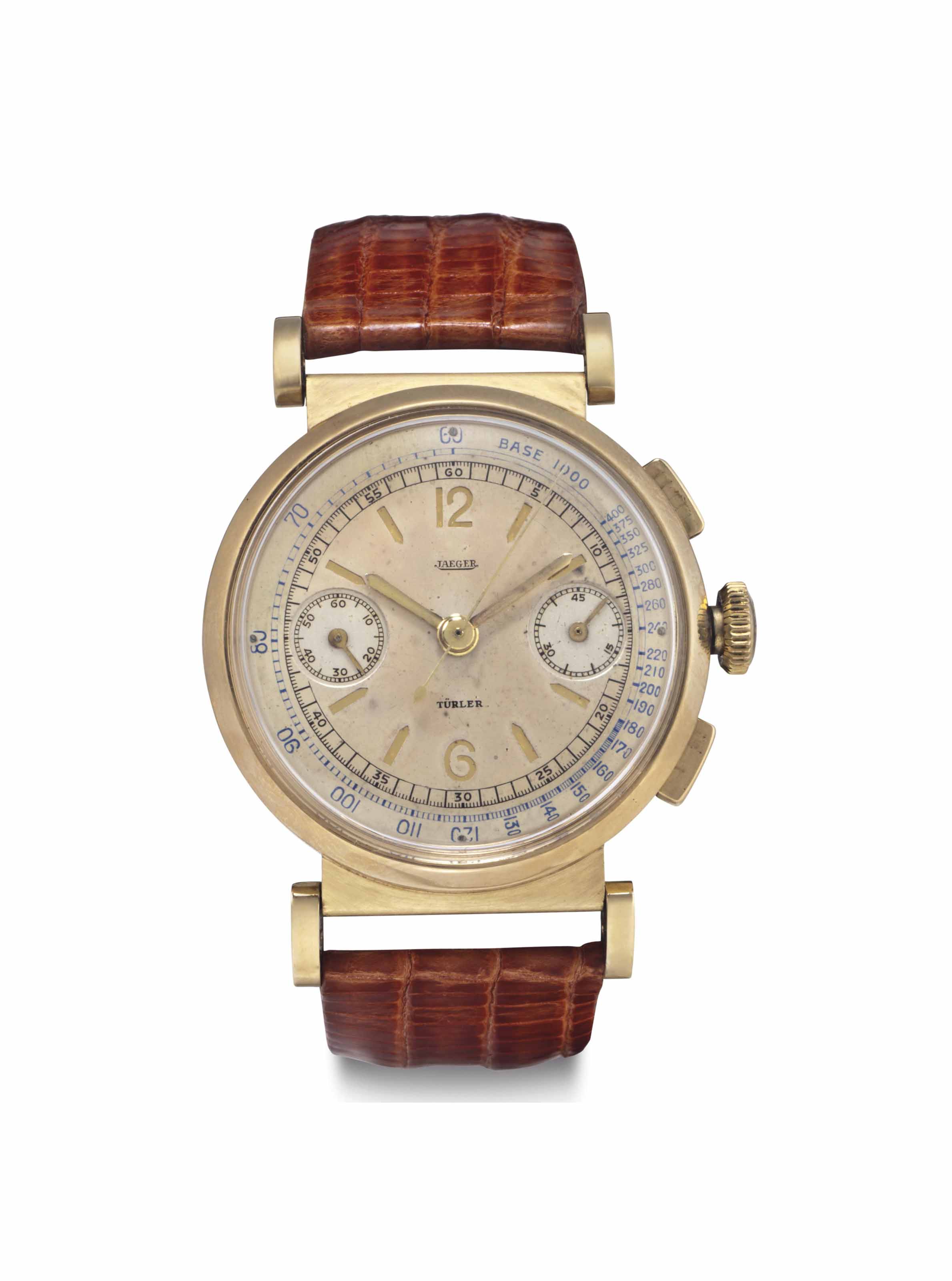 Posts 6,494 Likes 10,163 Mark020 ·Sep 29, 2021·not the sharpest pencil in the ΩF drawer Another very nice one from Christies: https://www.christies.com/lot/lot-5864946 (also here: https://www.liveauctioneers.com/item/34981017_jaeger-retailed-by-turler-switzerland-c1948)
