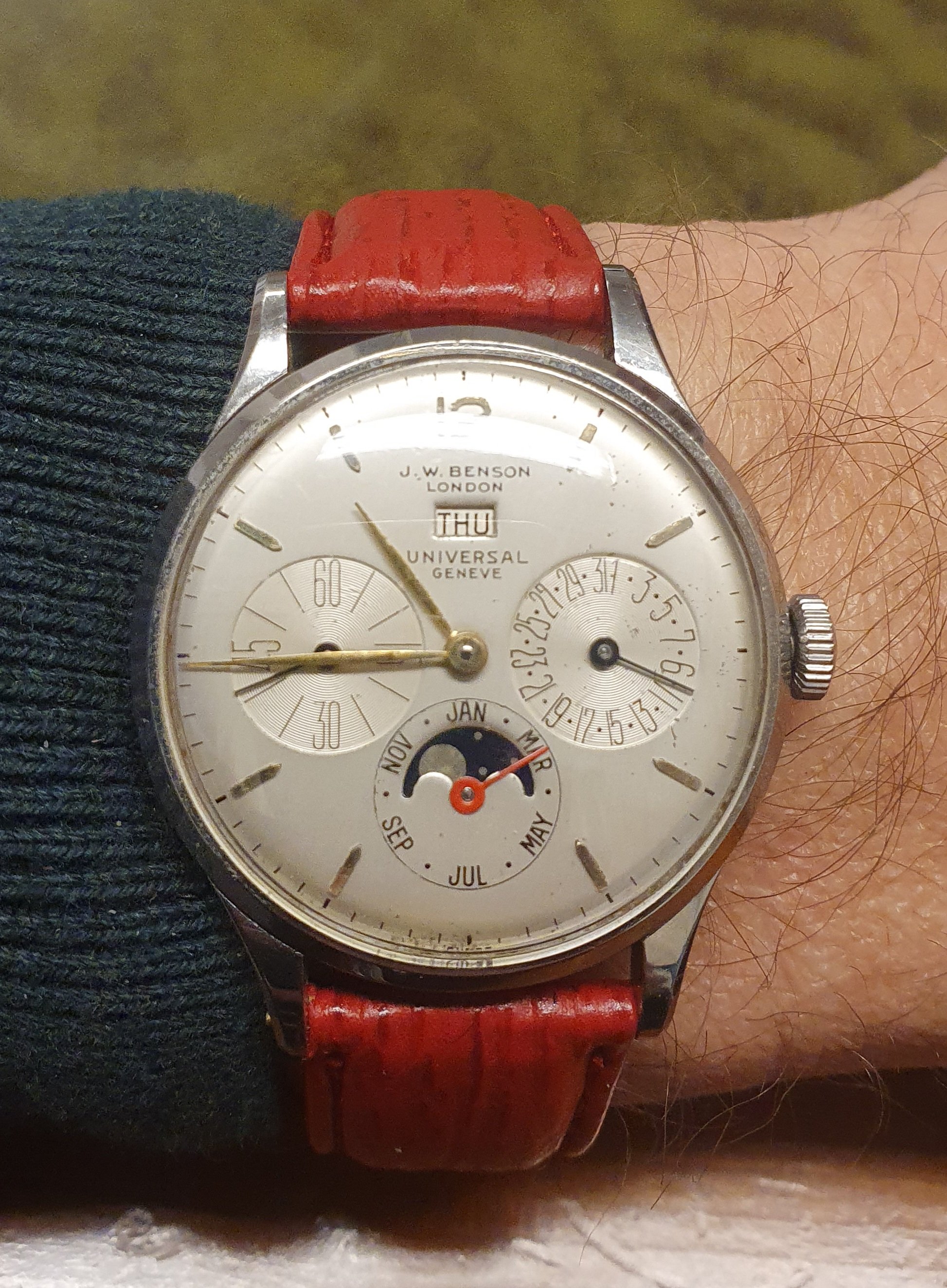 Firstly, given the pointy A, I believe it's a re-dial (serial no puts it at 1952). In terms of the word Hamilton I'm inclined to think it might originally have been double-signed as Hamiltons, as in Hamilton & Co the Calcutta jewelers, like the one below.