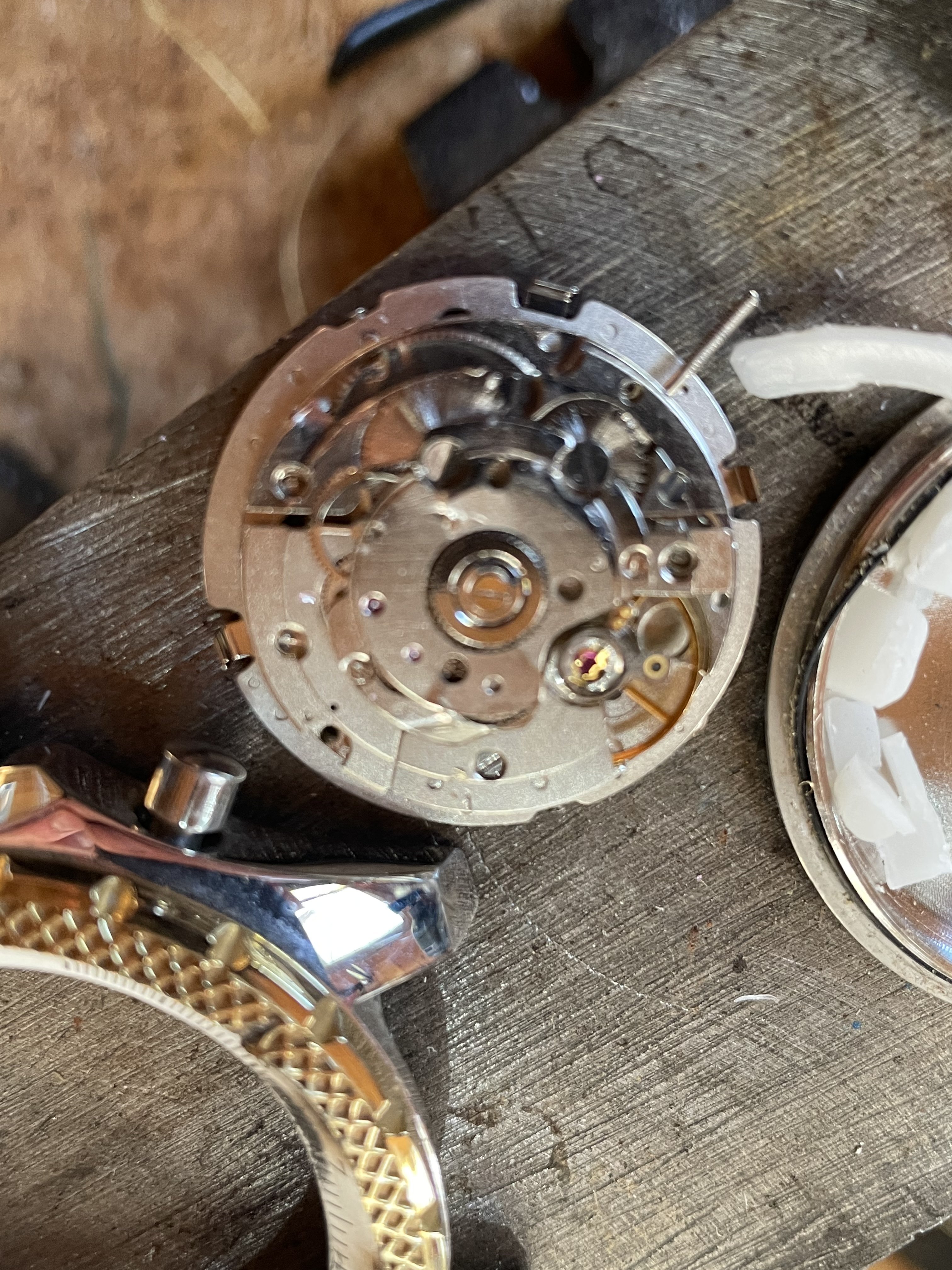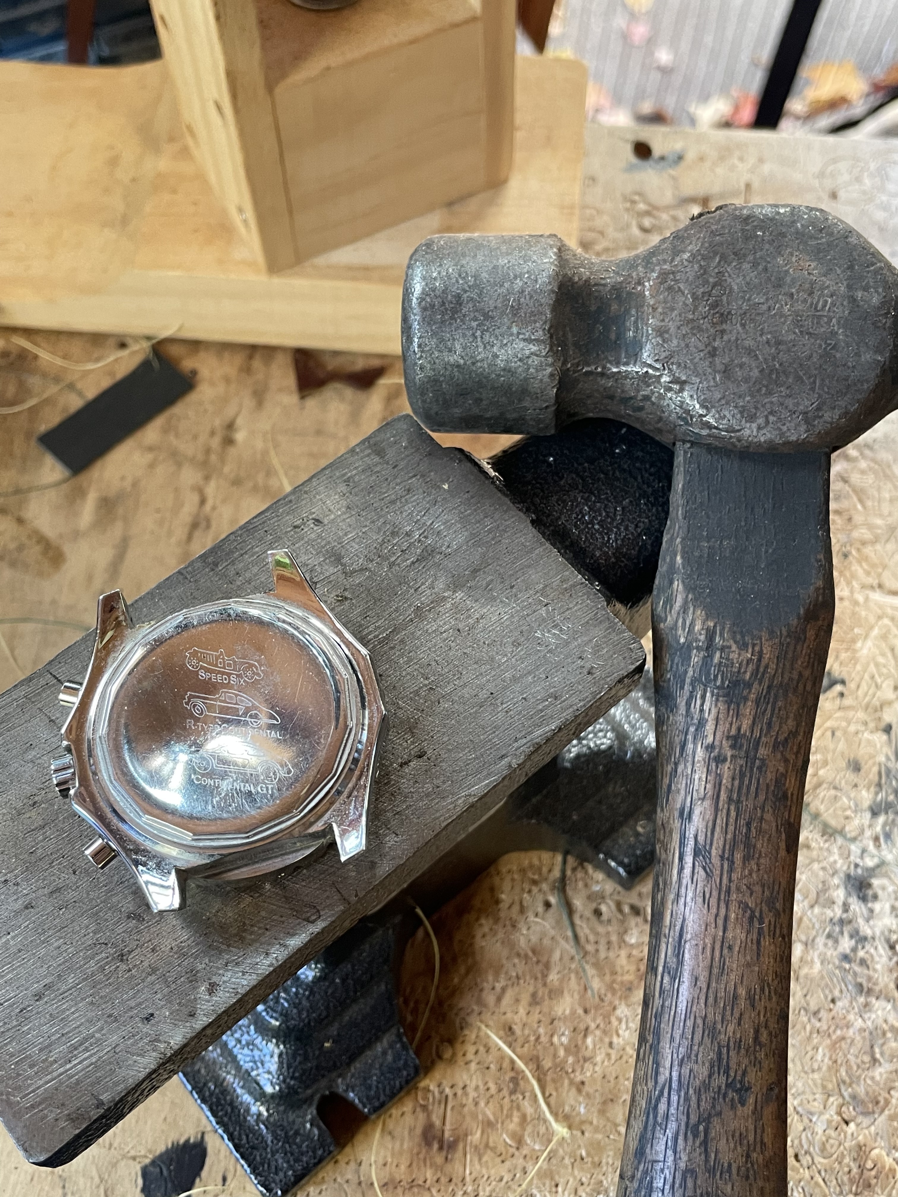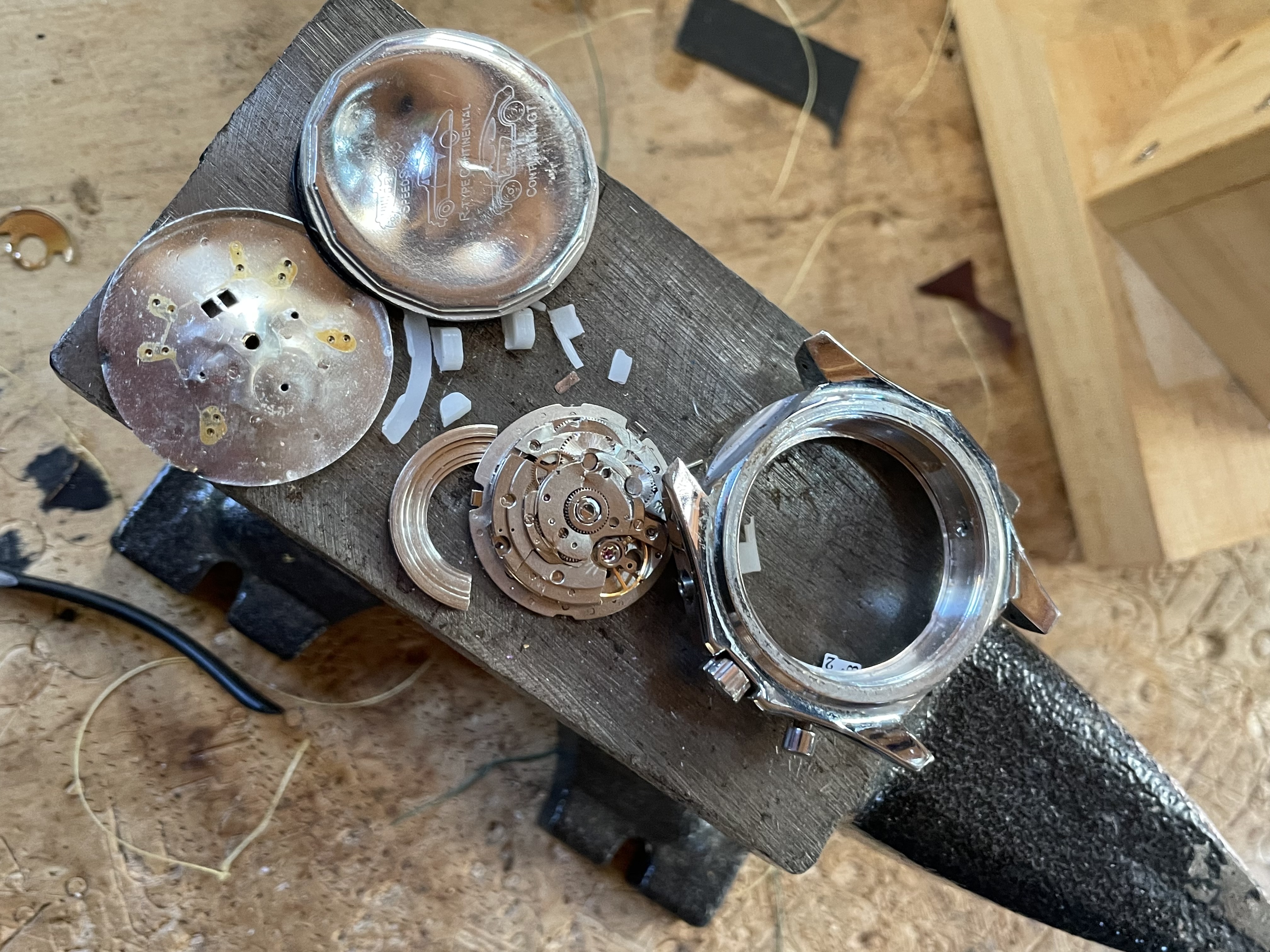 1 - Bracelet removal. 2) Crystal must be removed. Could otherwise be used as a weapon. And finally. Case back opening and movement service. This may have offended some… the watch was in an old building that we bought. Does not belong among my watches, no matter how modest they are.