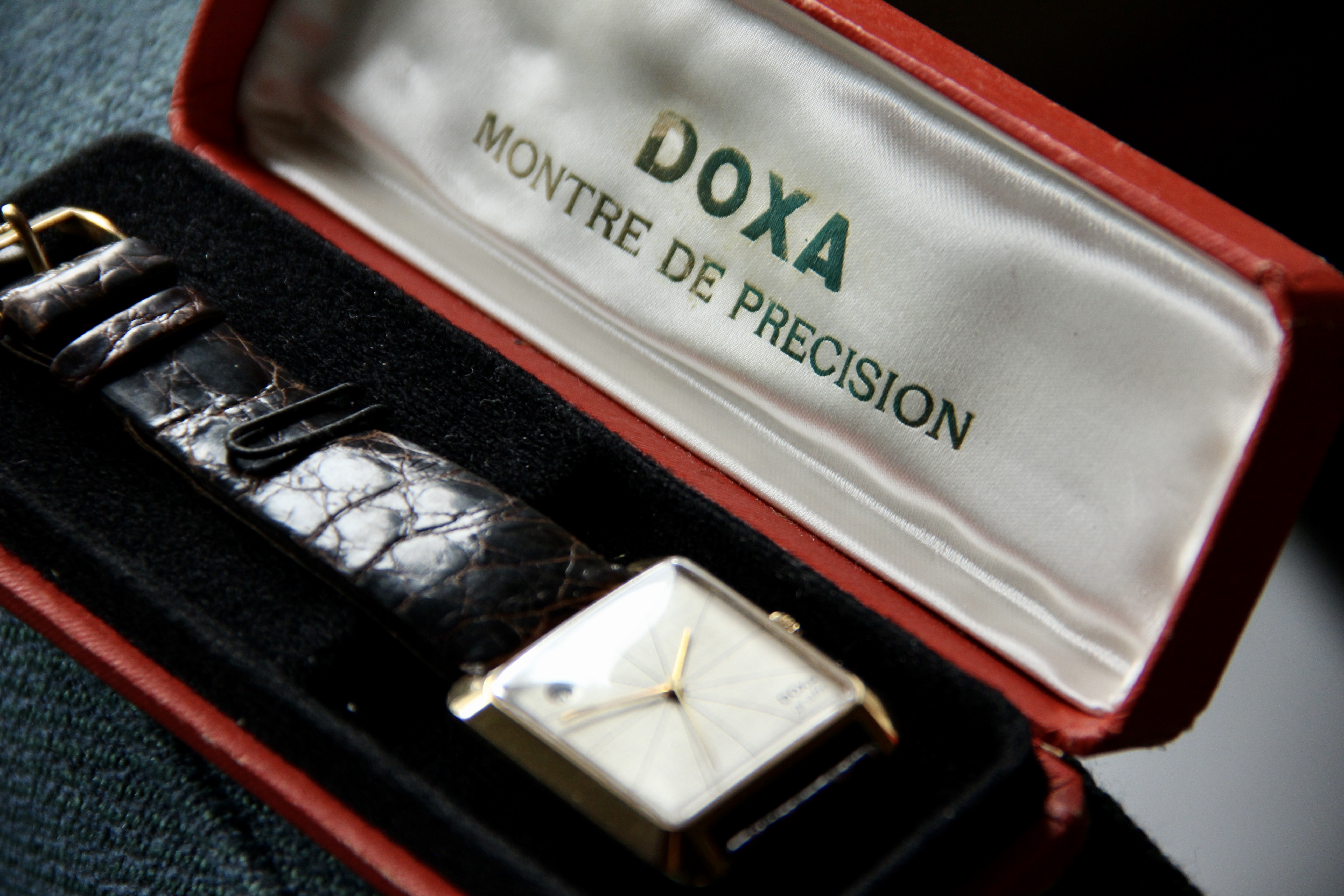 Up for sale today is my Doxa Grafic. For those that may not have heard of or seen this watch before, the Grafic was introduced in 1957 and was a Bauhaus influenced design born out of a keenness for a thin, square cased dress watch that was non-angular. The trend at the time had been very much for round cases. This example is from 1961 and comes with it's original buckle and box. Perhaps a nice gift for someone turning 60 this year?